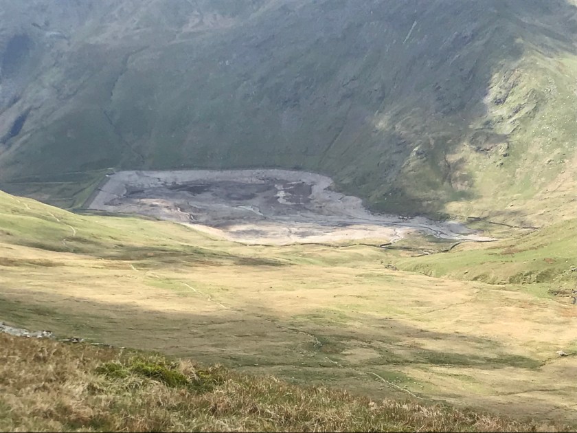 After getting Evie fed, changed and in the sling we set off. Normally I would stop for a swim in Small Water, but it was just us, so as lovely as it looked, I walked on by and continued on up to Nam Biel. I was shocked to see that Kentmere reservoir, another of my favourite swim places, was totally dried out.
