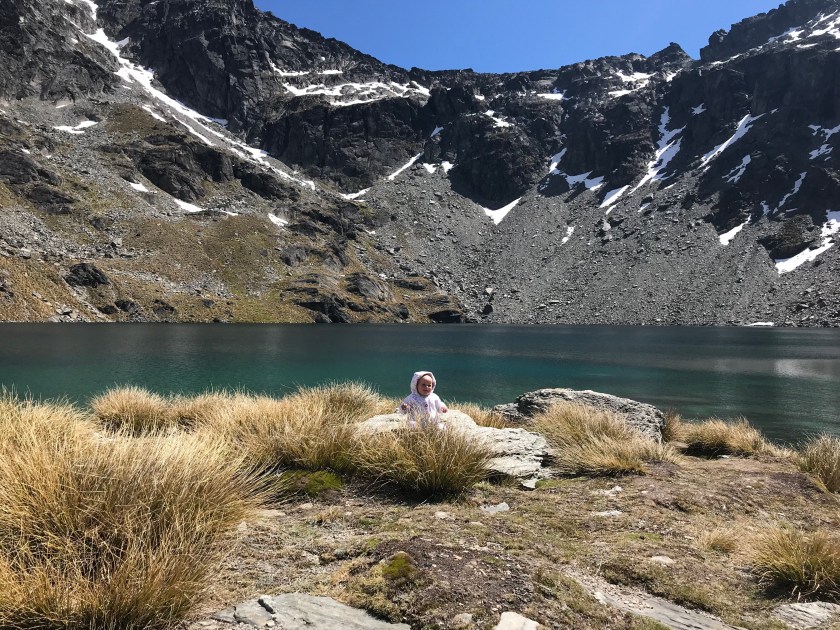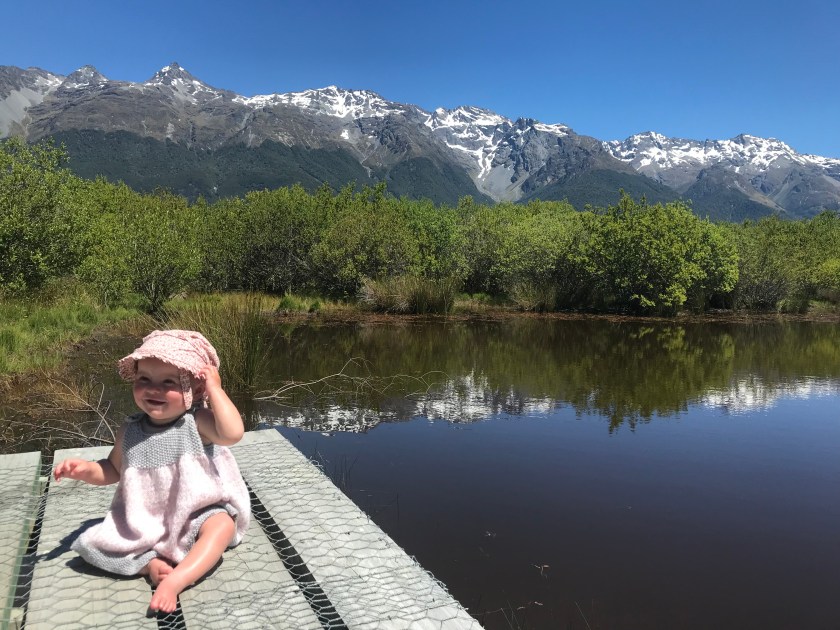 So after a hot picnic on a small jetty, we headed back to the head of the Lake Wakatipu and there we did swim. Jumping off the jetty and in and off the swimming platform, into the gorgeous blue water. Evie had a little paddle but was not hugely amused at the cold temperature of the water! So she hung out with Granny & Granded.