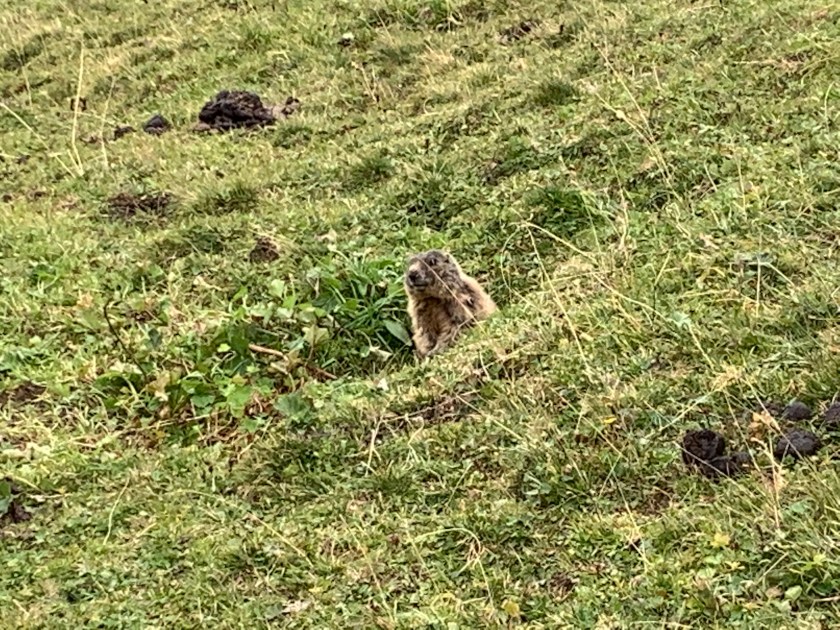 We spotted a friendly marmot on the way back down the mountain. What a joy to see a marmot up close. It then disappeared down its burrow.