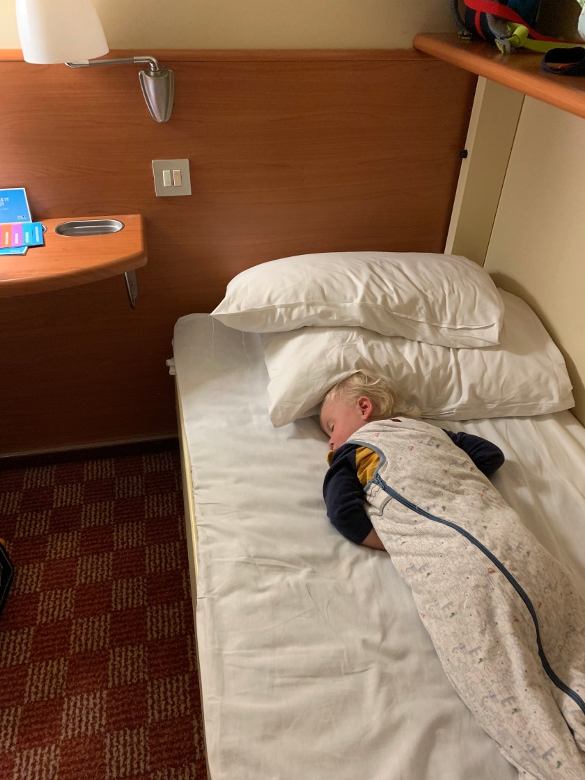 After getting an early dinner on the ferry in the hope of an early night and settling Evie, we head back towards the cabin. But not before Evie sees the dance floor and insists on a boogie!