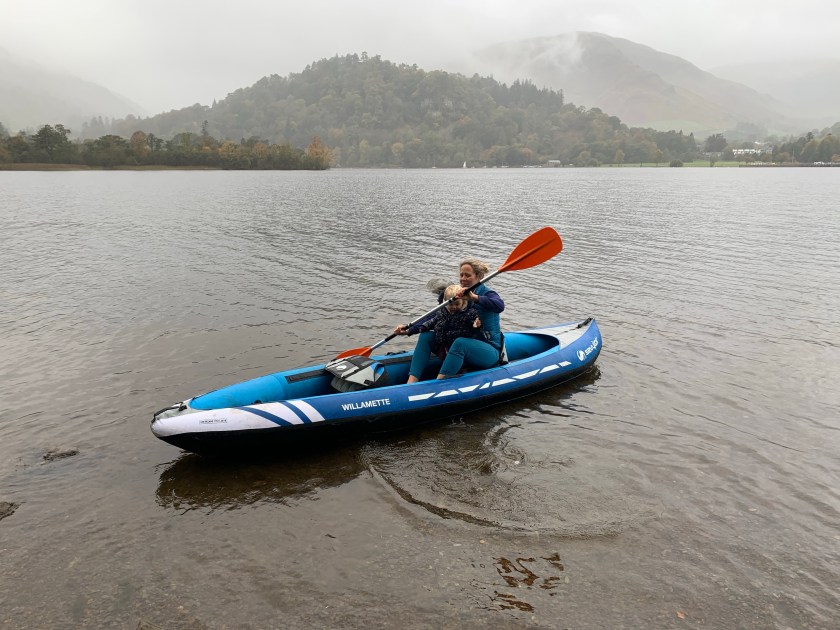 Some tourists who are packing up their tent kindly offered us the use of their kayak, so we had a short trip out on the lake in the rain!