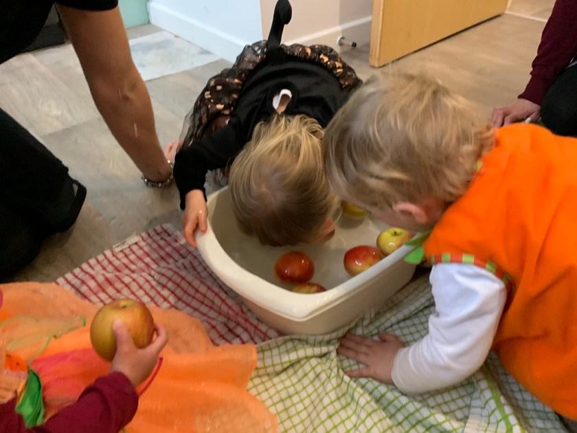 Willow and Oliver are the brave ones with bobbing apples, whilst Evie and Bella observe….