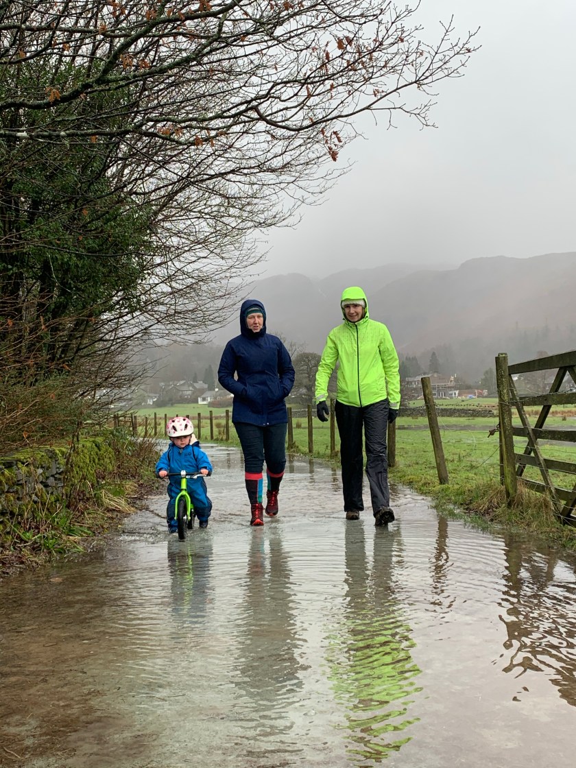 Arranging a meet up with my friends Hazel and Beth, with a balance bike to keep Evie amused, we set off on a flat river path walk along Great Langdale Beck from Elterwater to Skelwith Bridge.
