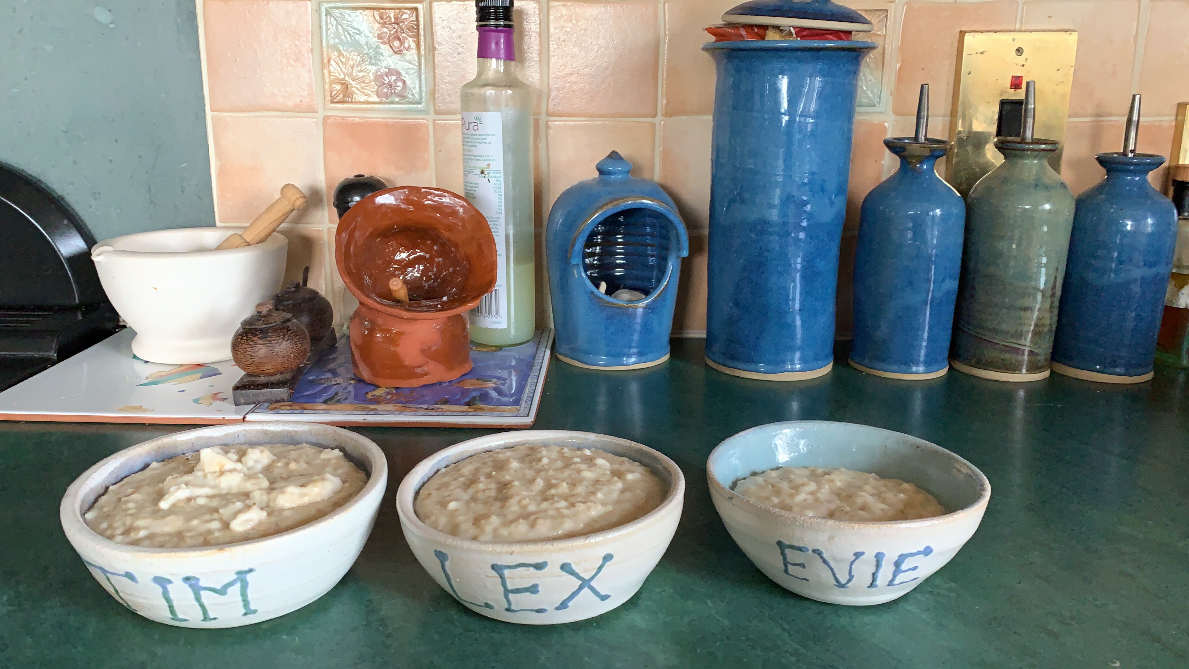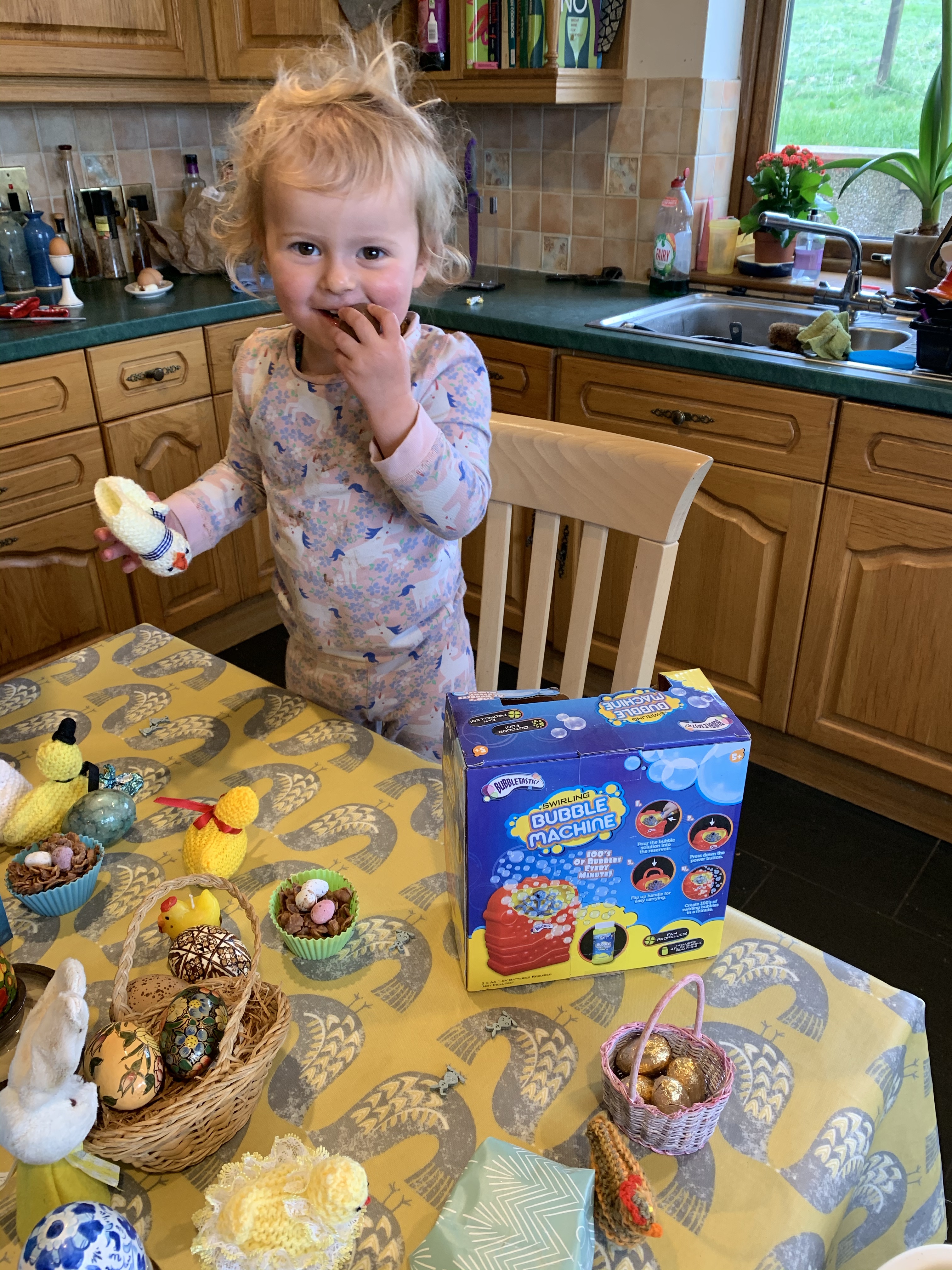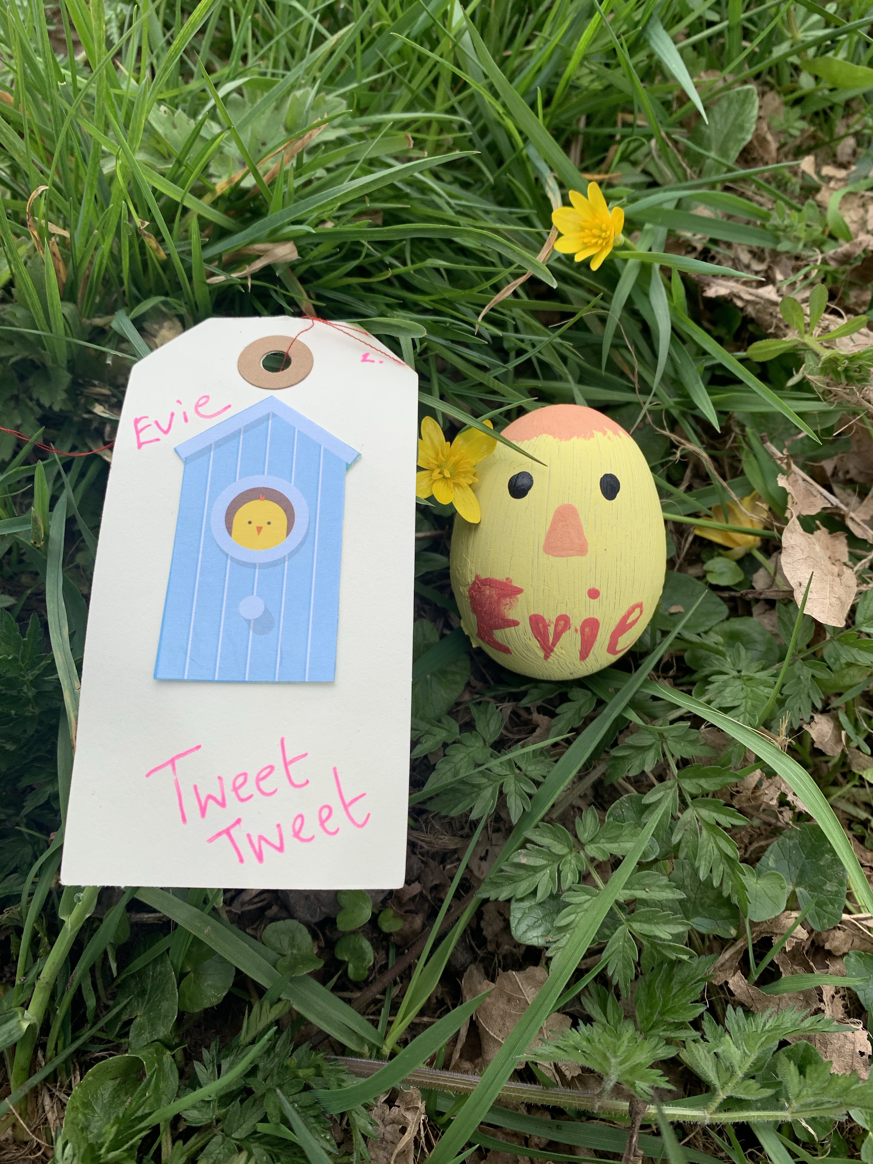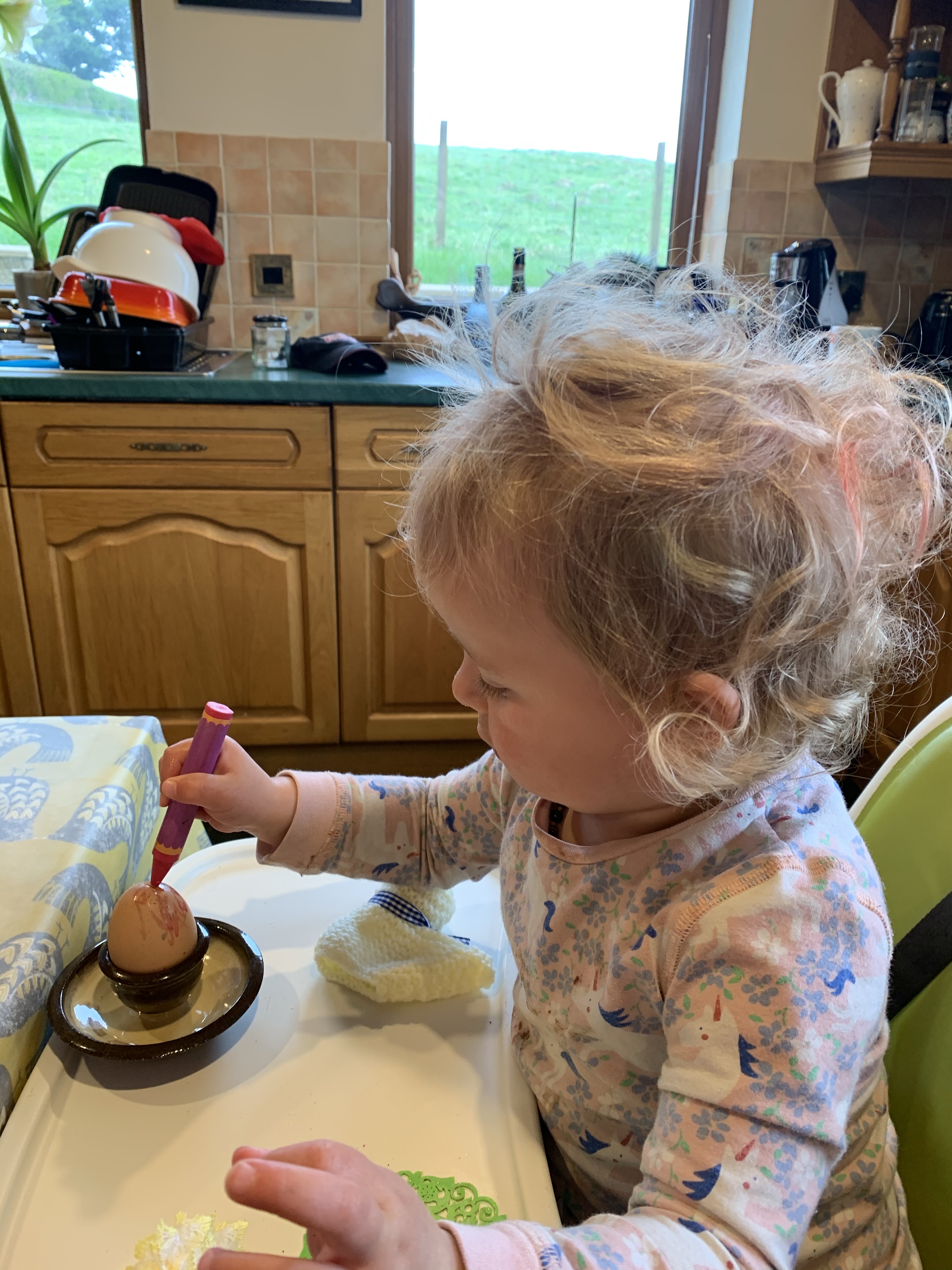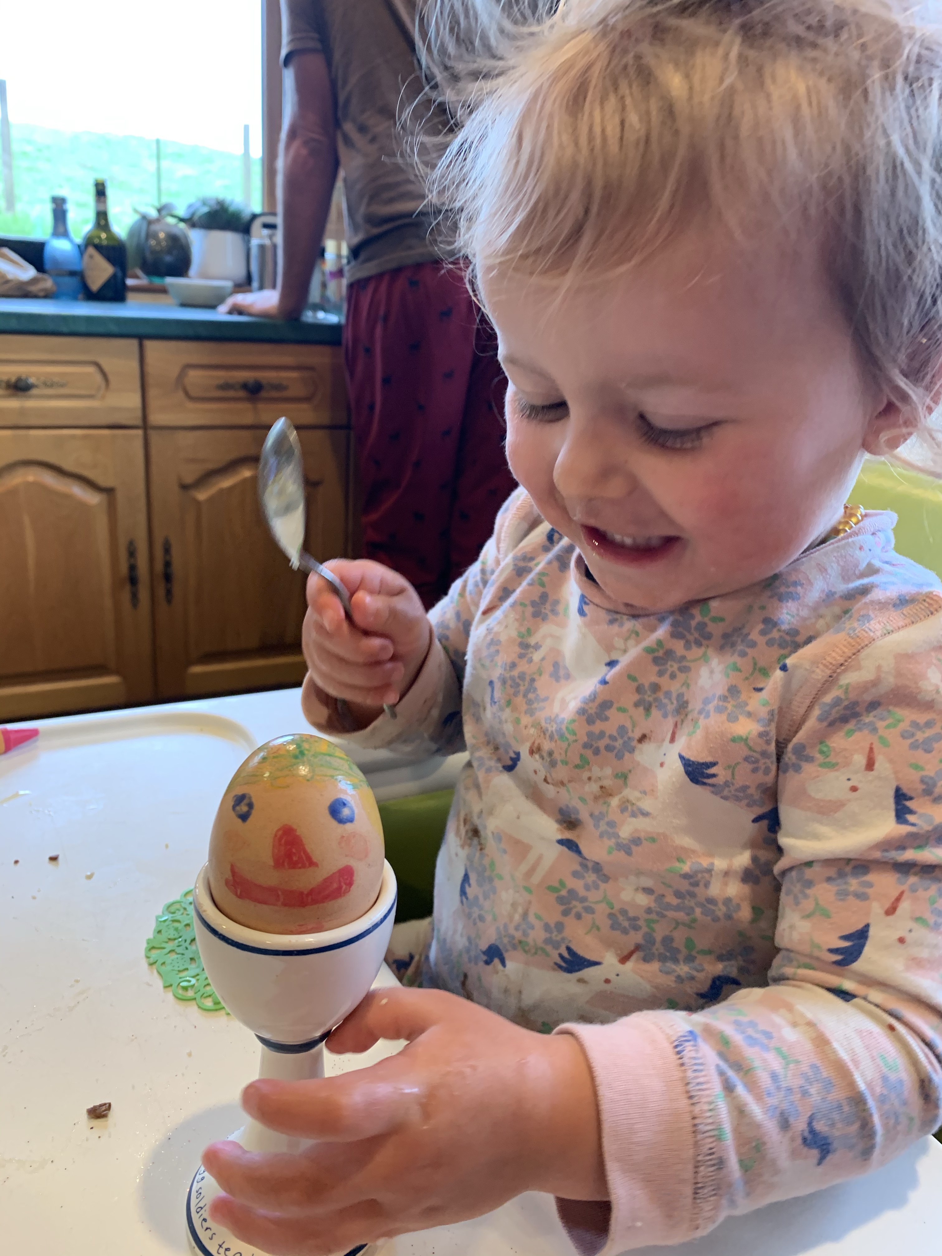 Easter Although just the three of us we tried to make Easter special. We had had a delivery of eggs from Evie’s Omi with foresight and stuck to my family tradition of painting our boiled eggs at breakfast. After breakfast we set out on an Easter egg hunt that I and a friend had set up earlier in the morning, which Evie and Oliver could then both do separately – good job we had good clues!!