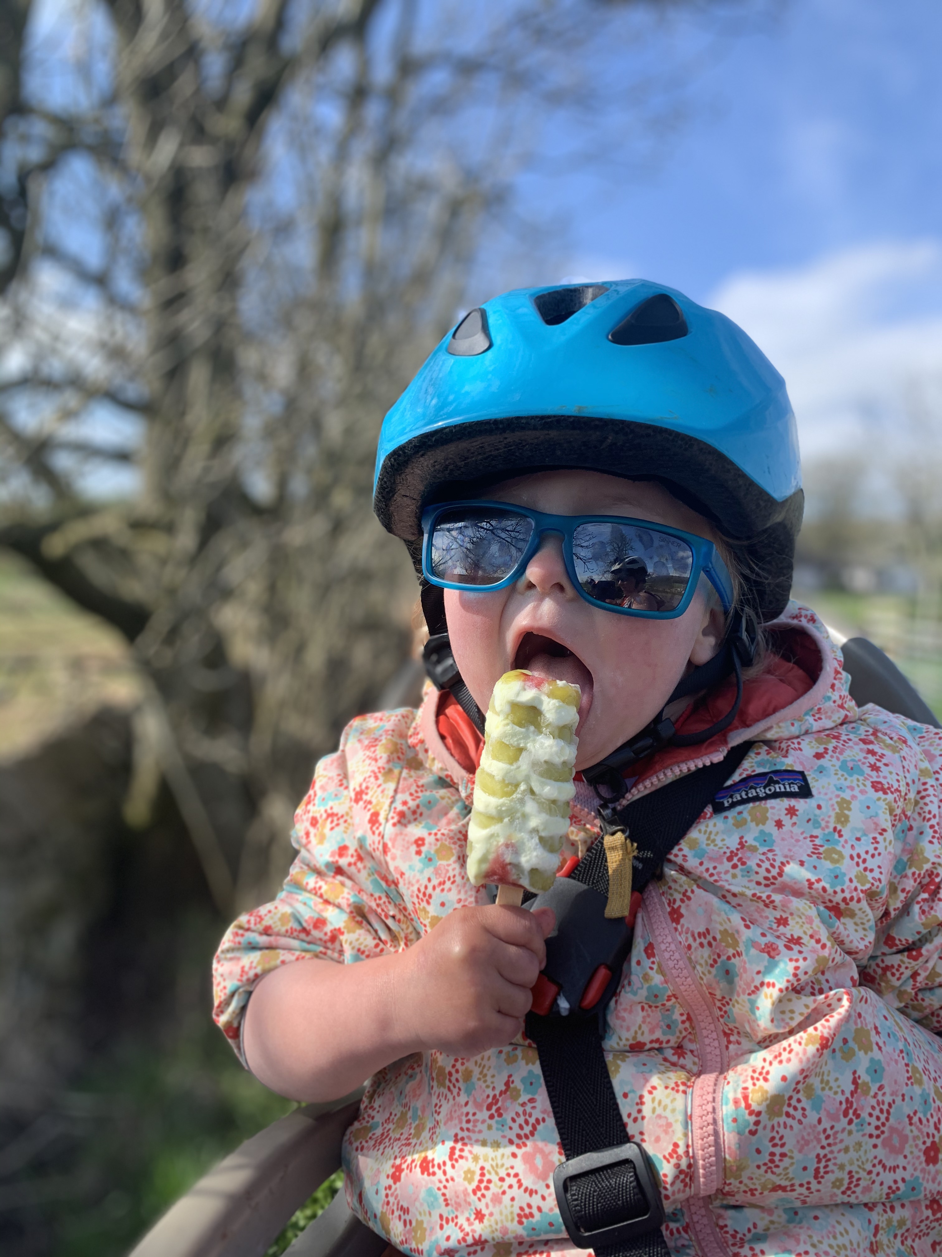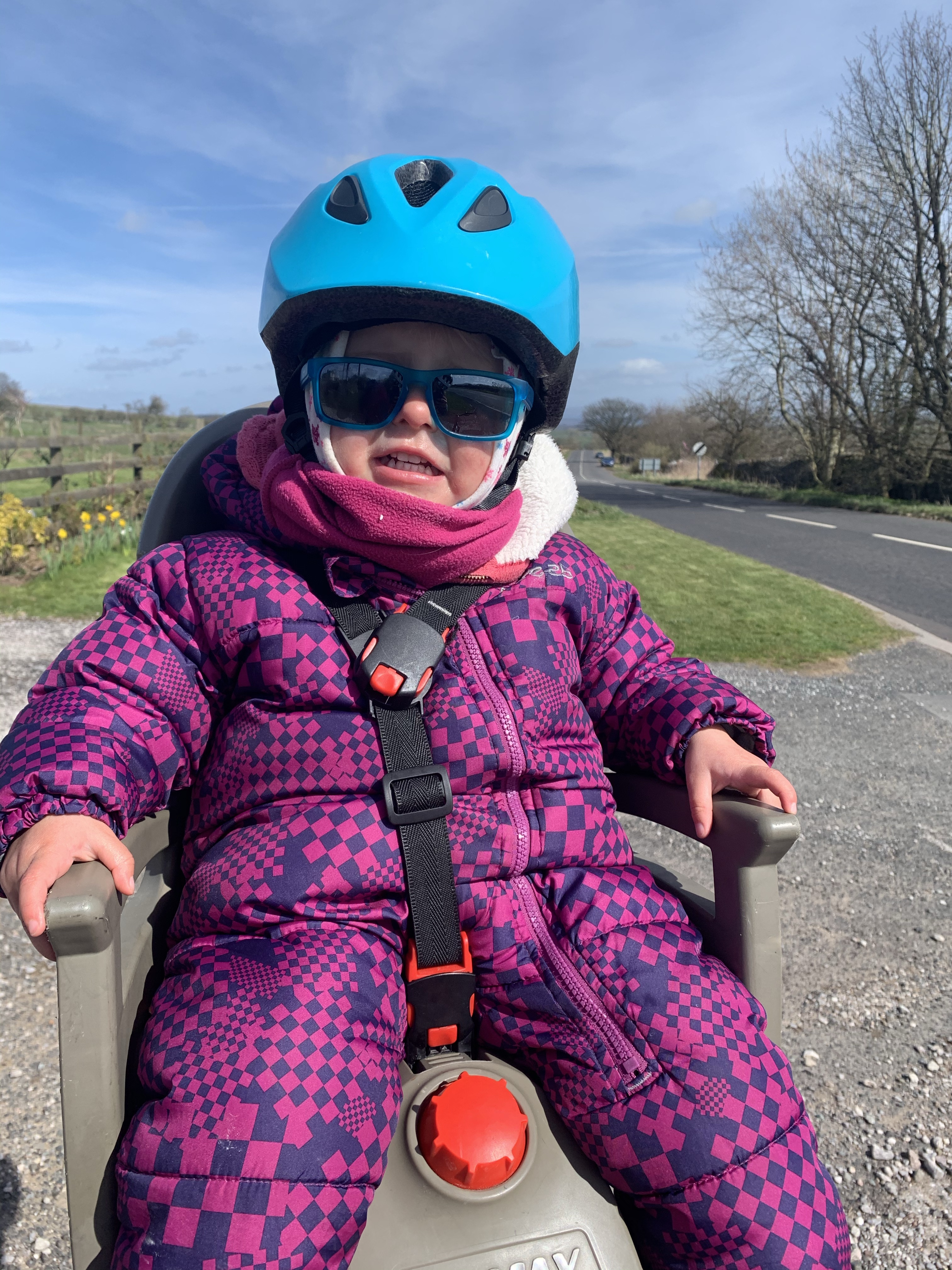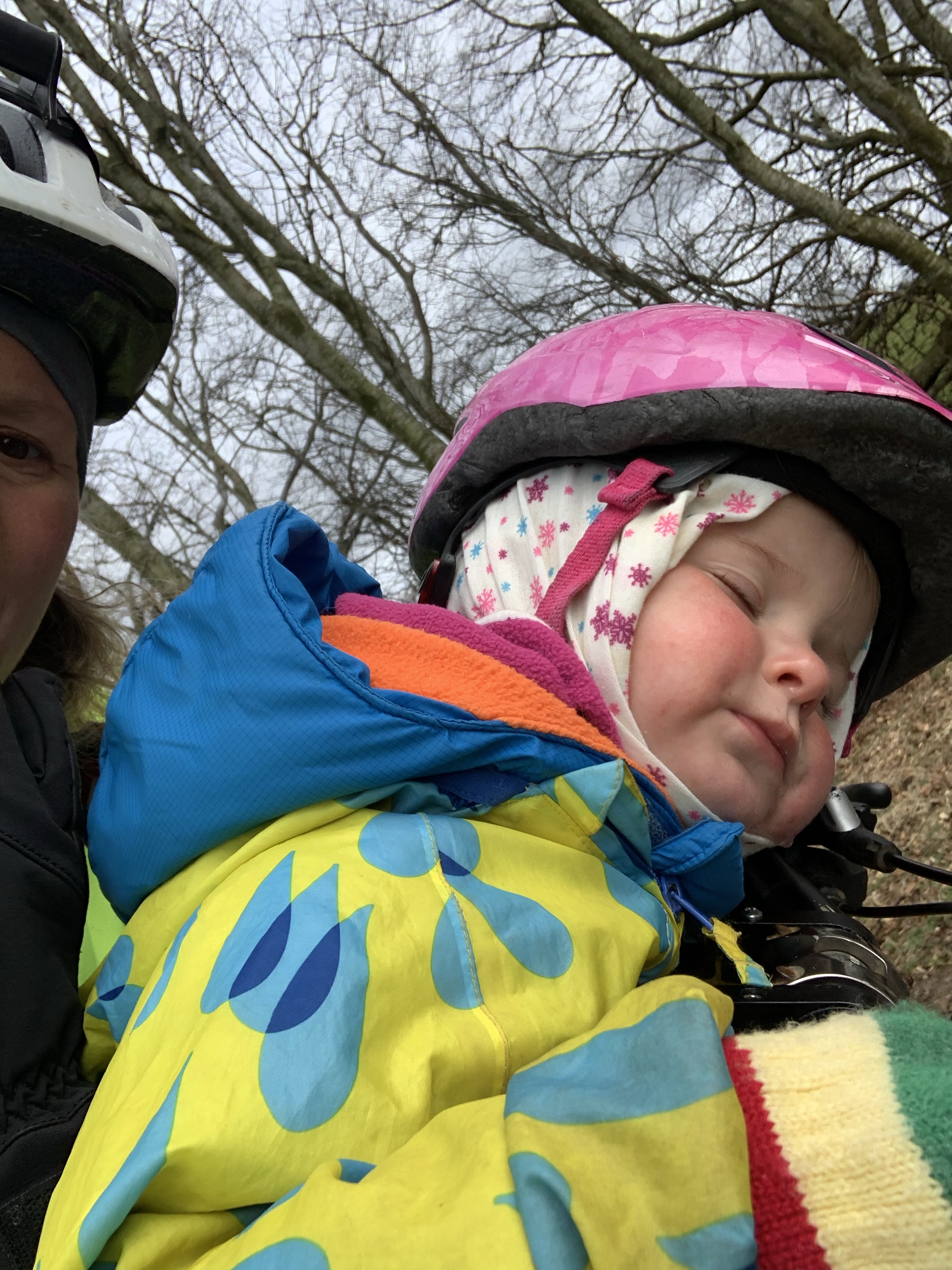 Biking close to home Being allowed an hour of exercise a day, we did a decent bike ride most days. We had got Evie a new bike seat – a Shotgun- so that she could sit upfront. Although she did keep falling to sleep so quite often for the longer rides we still used the back seat.