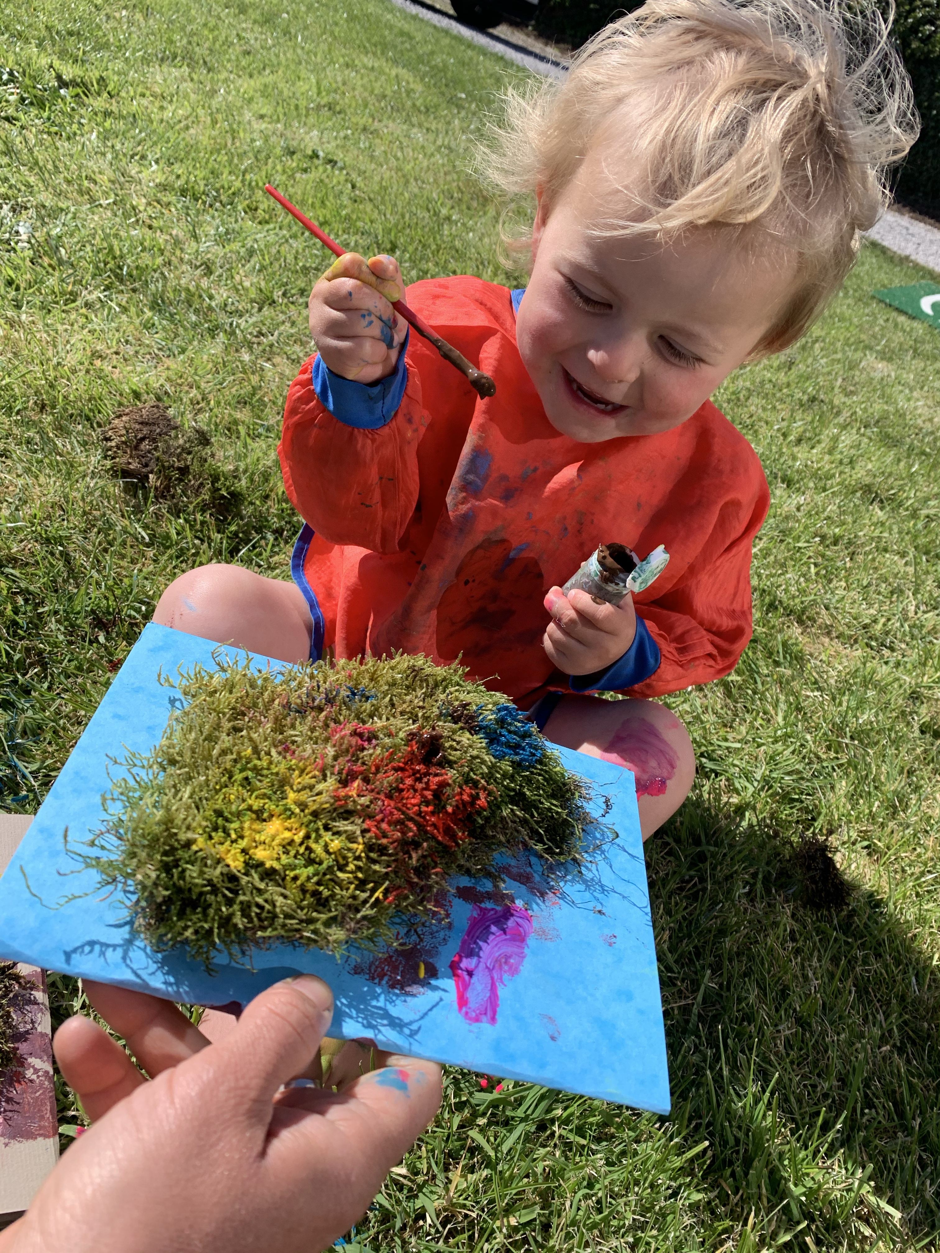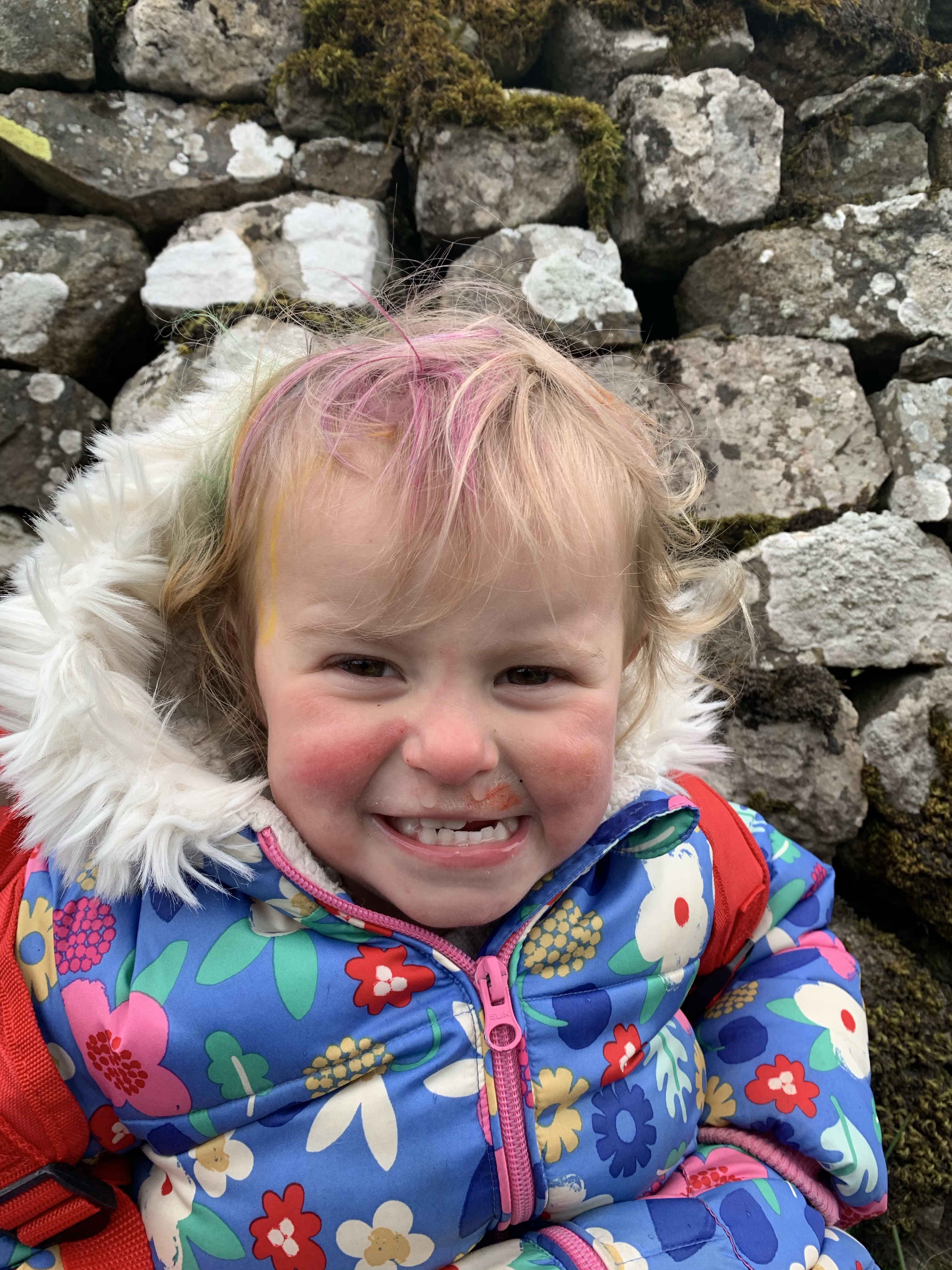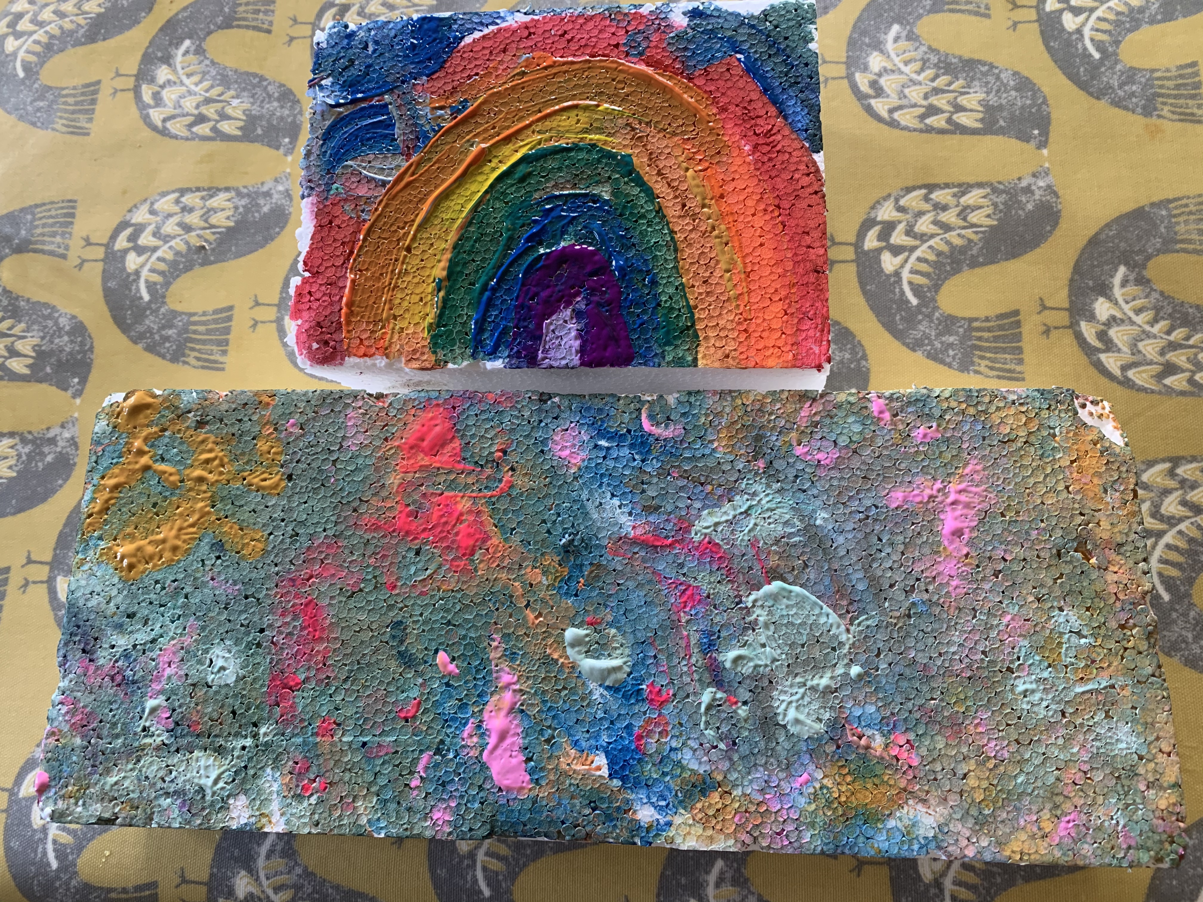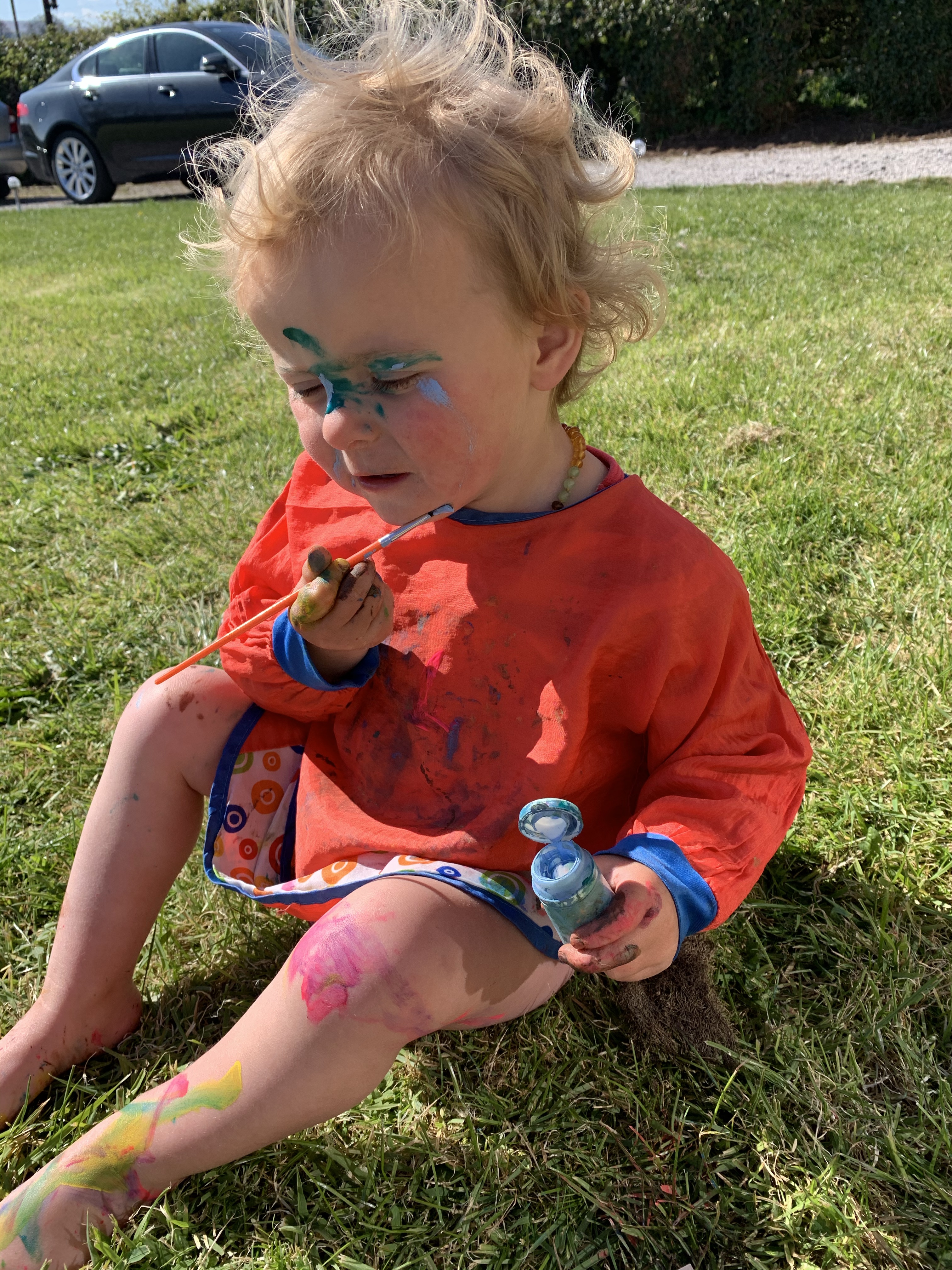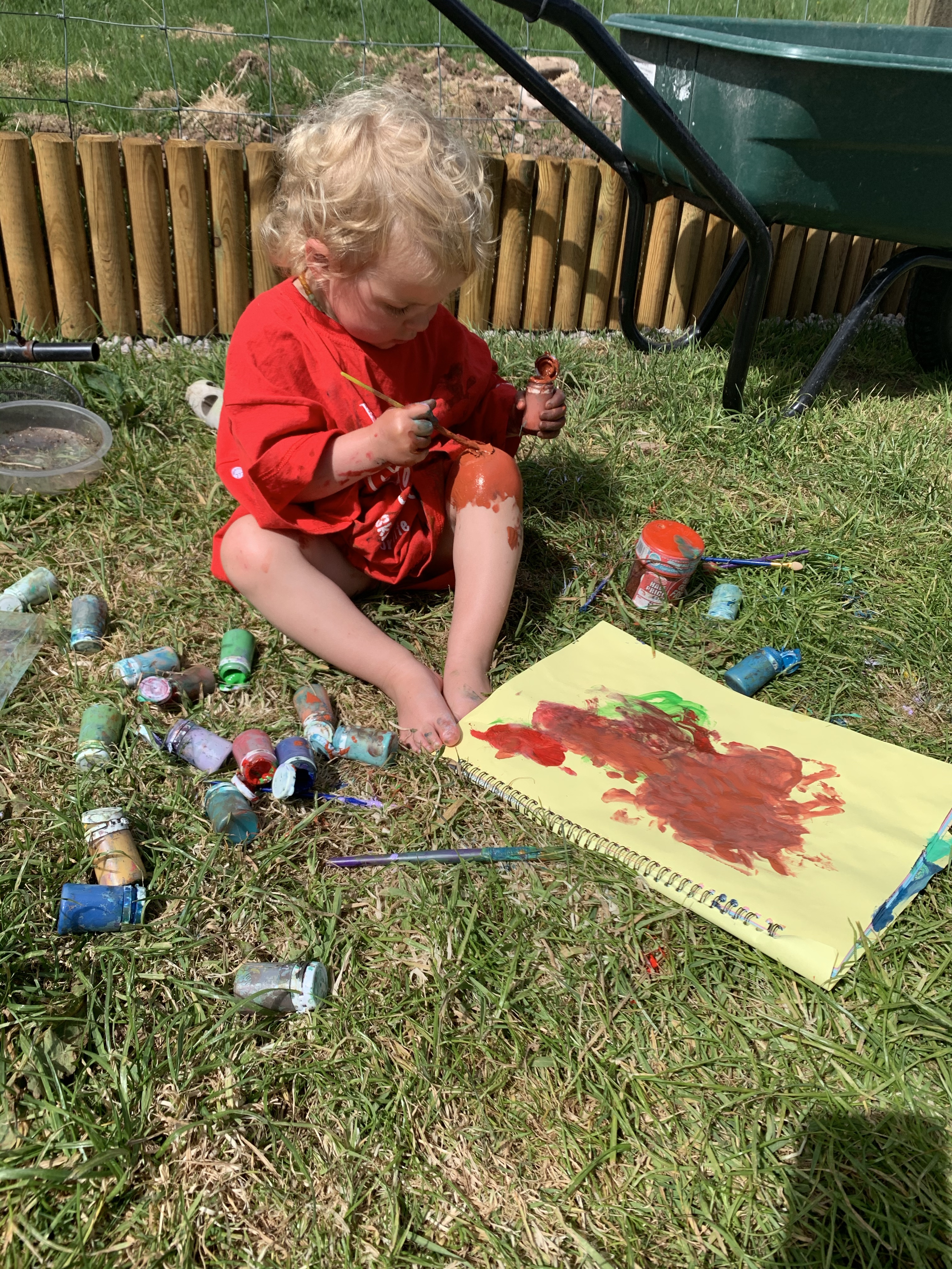 Doing art We spent quite a bit of time painting various things to make cards to send to people that we couldn’t see. Although the projects often started and finished well, there was often a painted Evie as a consequence as well! Thankfully only once a painted house to! Evie remains very proud of her rainbow!