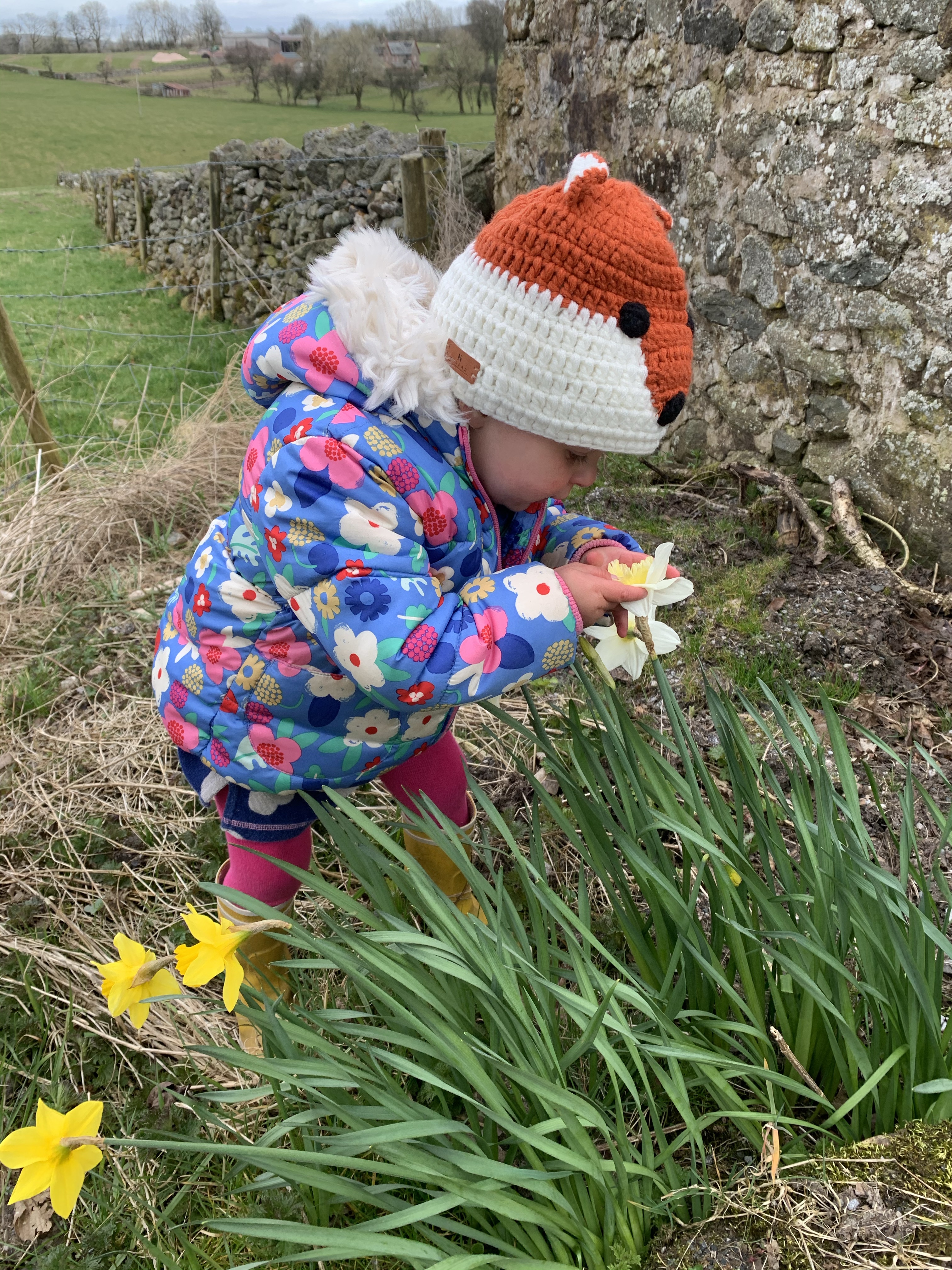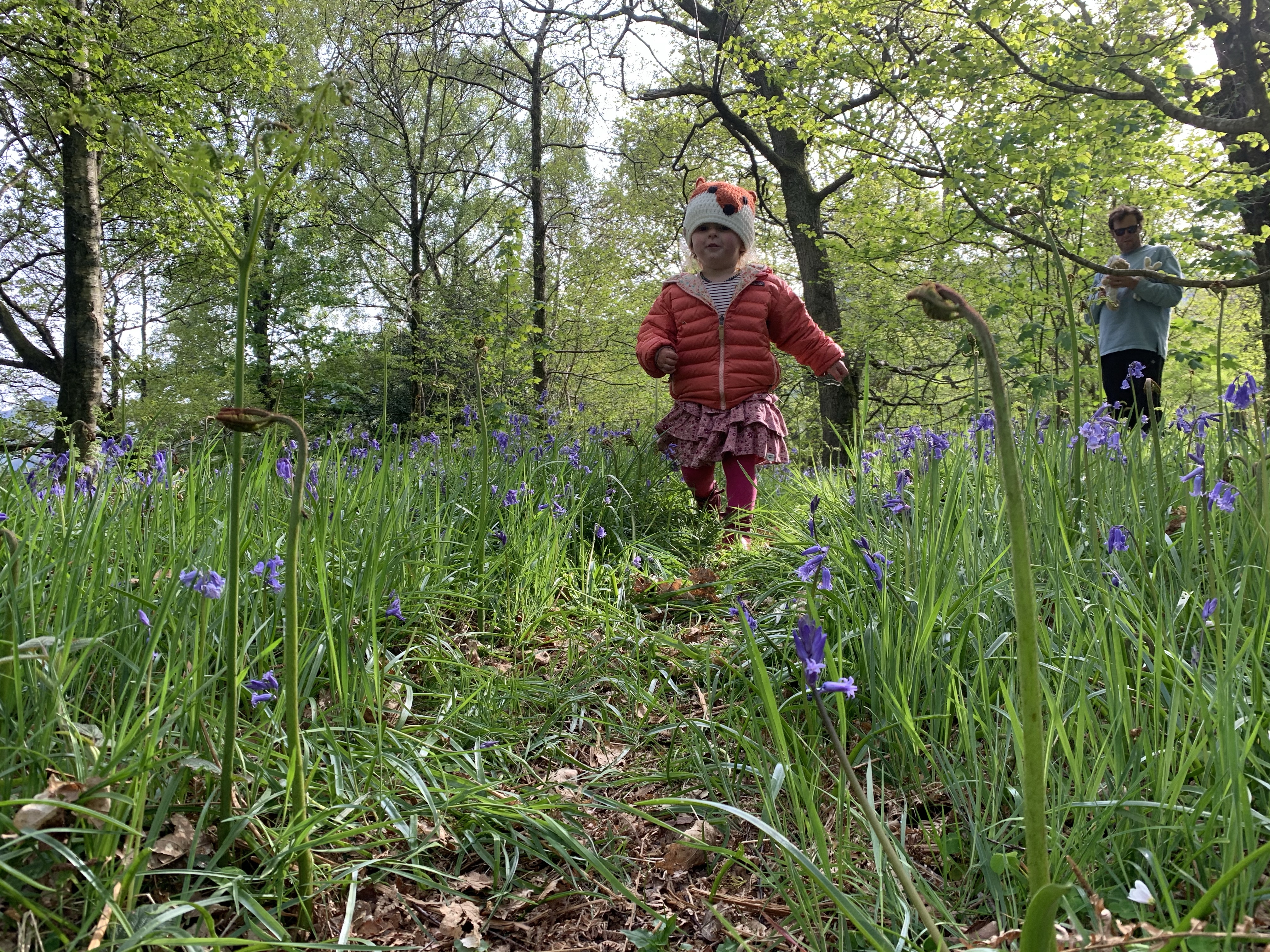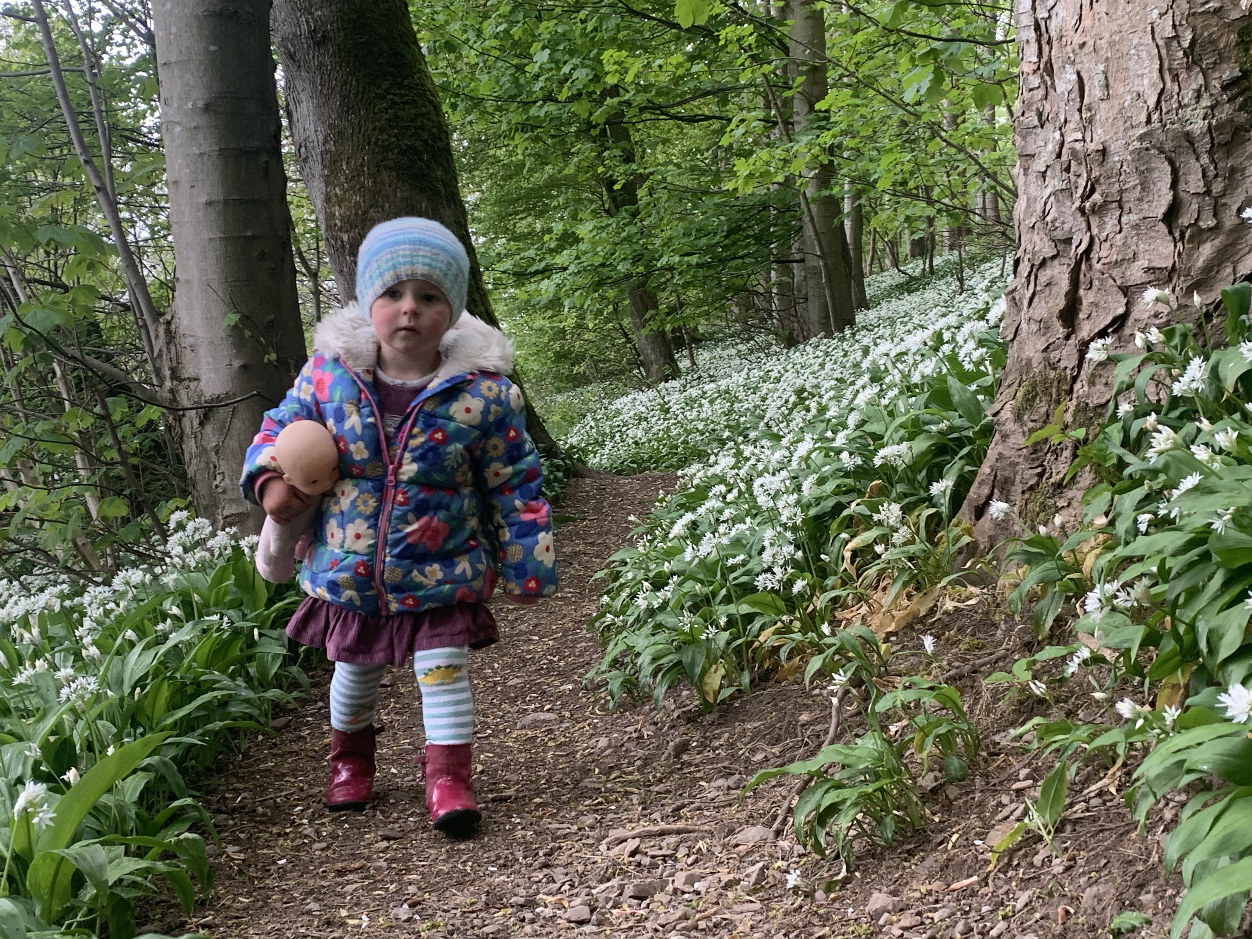Local walks like everyone, there were lots of local walks to be had near where we live, with daffodils to smell, rocks to climb on a puddles to jump in. The walks got a lot more exciting and pretty once we could drive or cycle to nearby places. We especially enjoyed the forests of wild garlic and bluebells and seeing the lake again so that Evie could throw stones in.