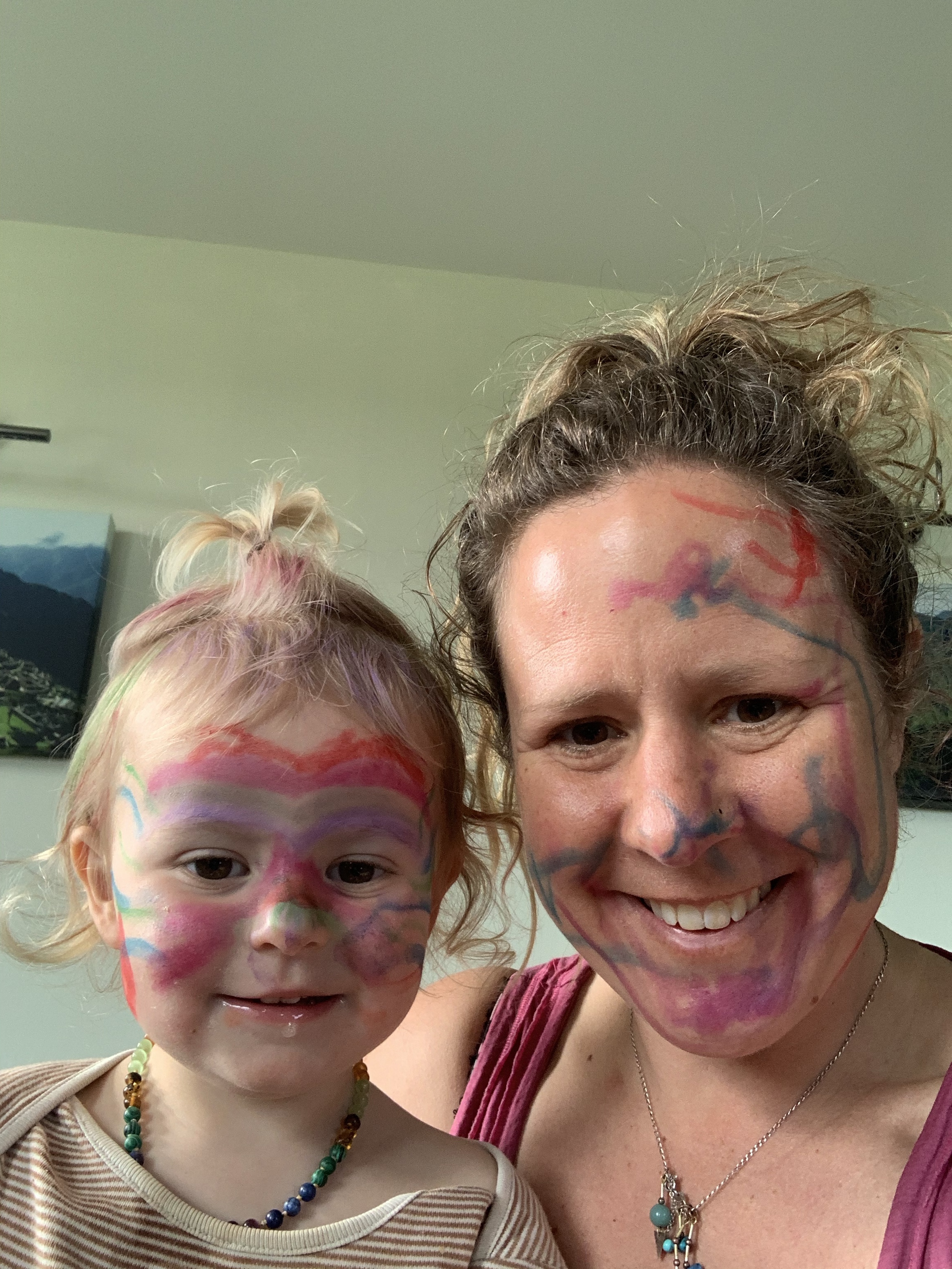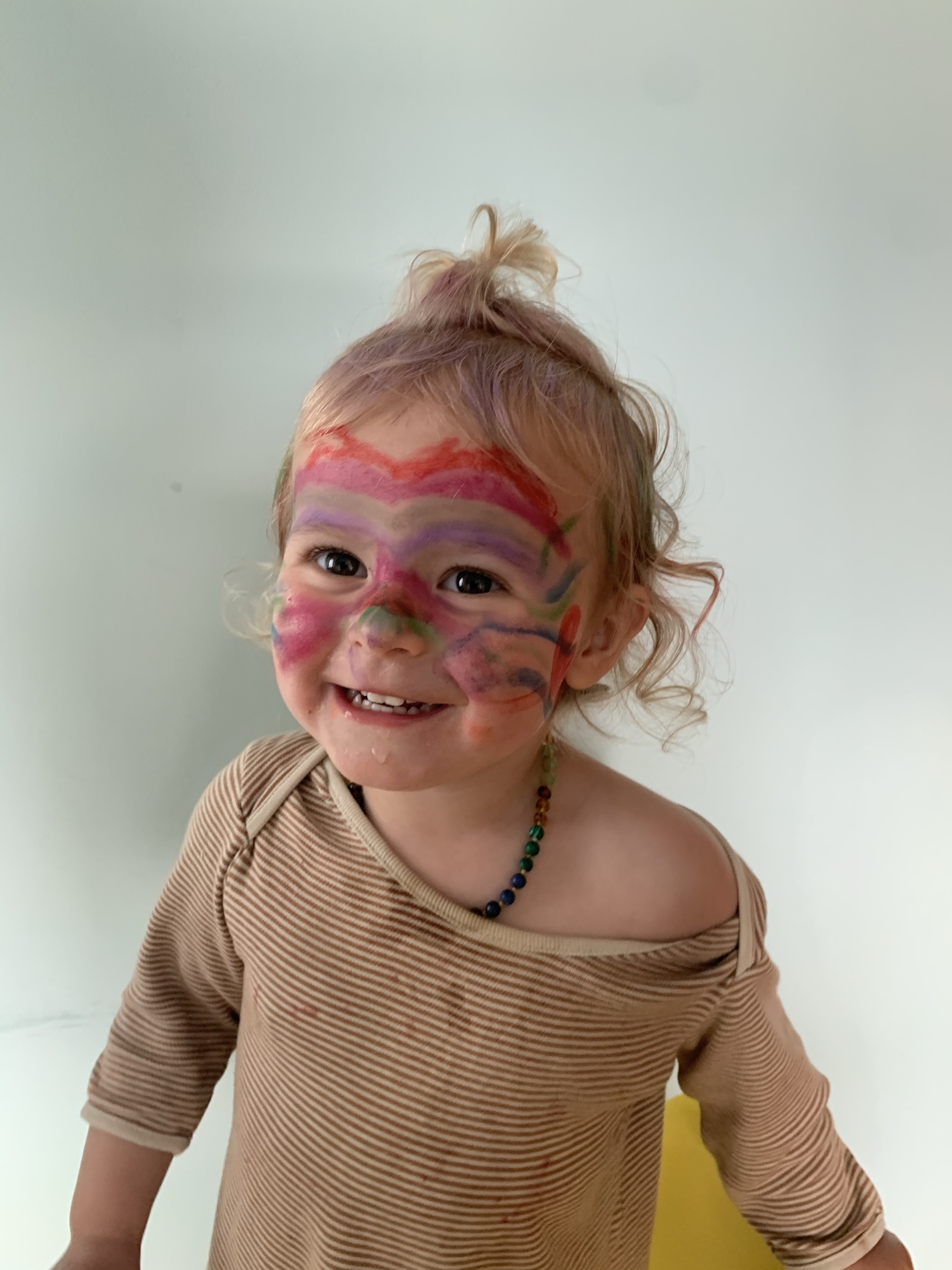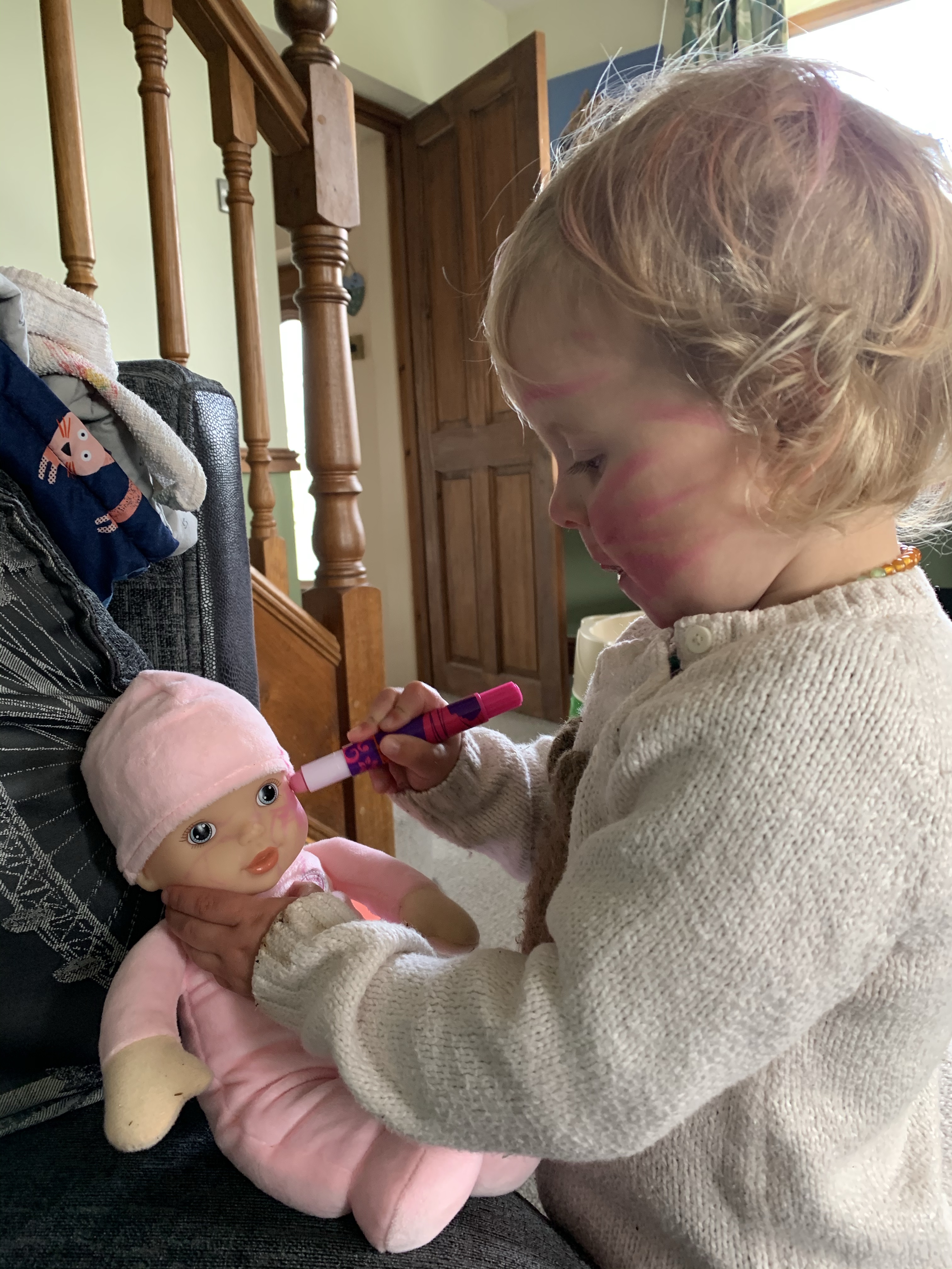 Painting faces Early on in lockdown I bought some craft items – sensing that we may be needing them. I think the face paints were the most used to begin with as Evie really liked to be a ‘tiger’. She likes baby to be a tiger to!!