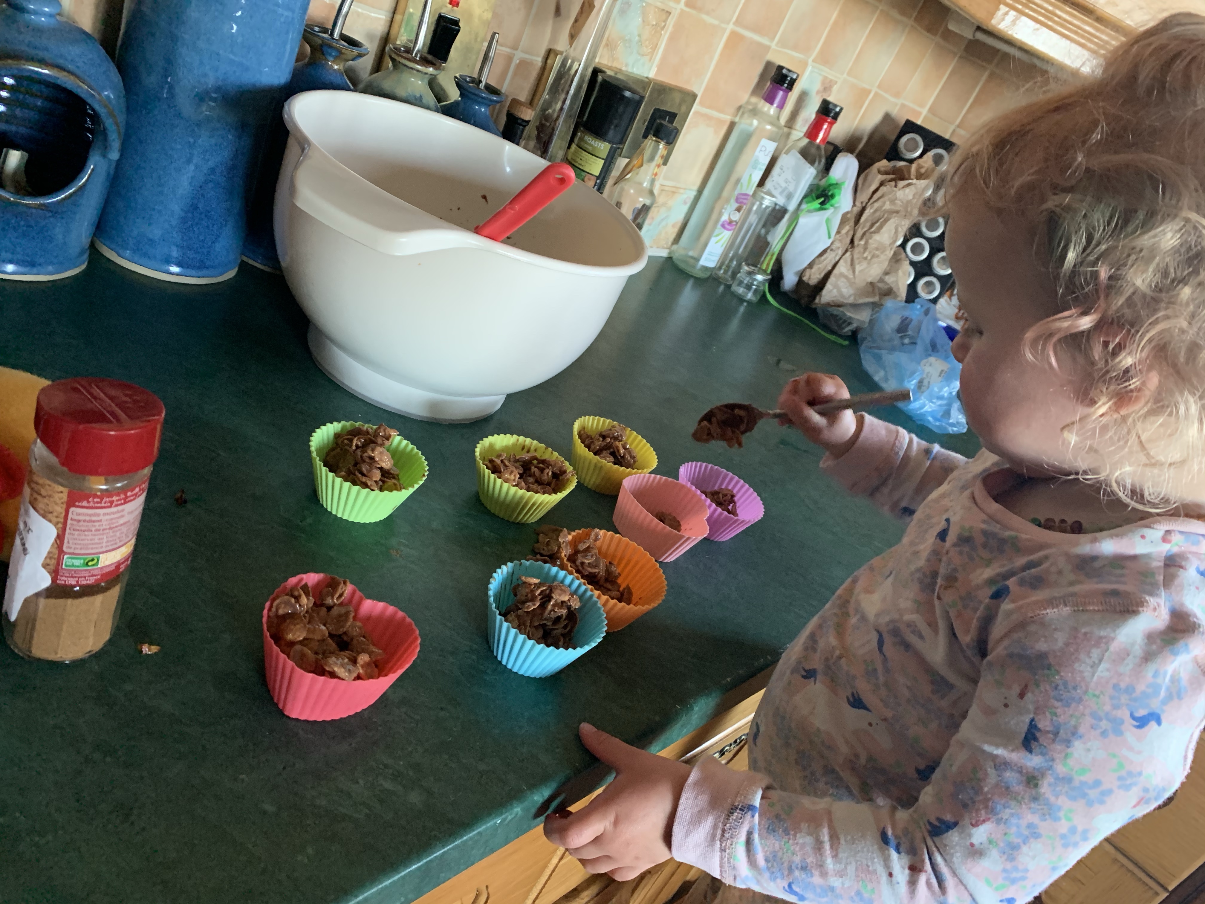 Helping mummy to cook Evie has her own special knife and is always keen to help with cooking and baking. Learning her vegetables as she chops and especially enjoying putting sprinkles on cakes (that she can then eat immediately)!