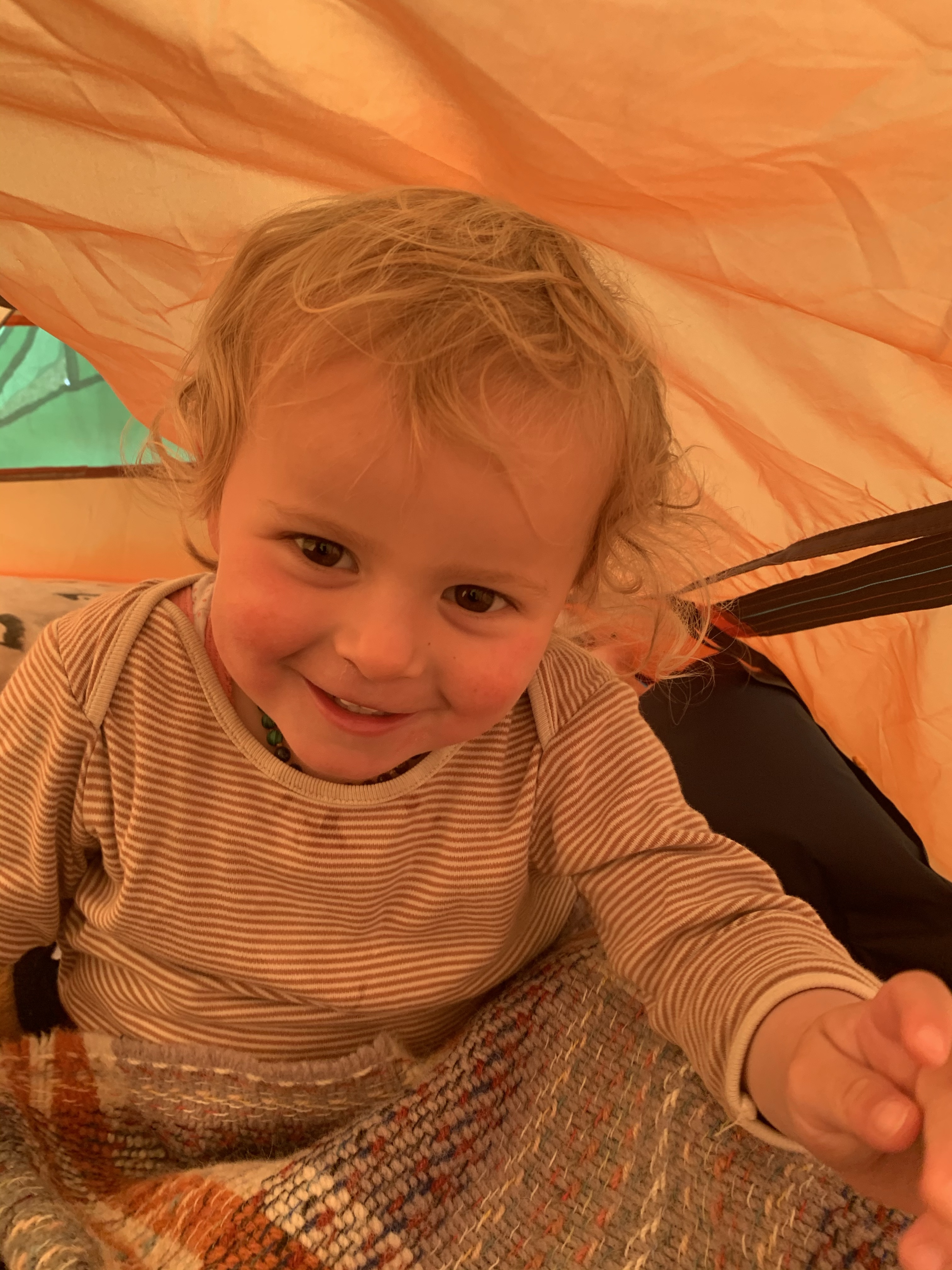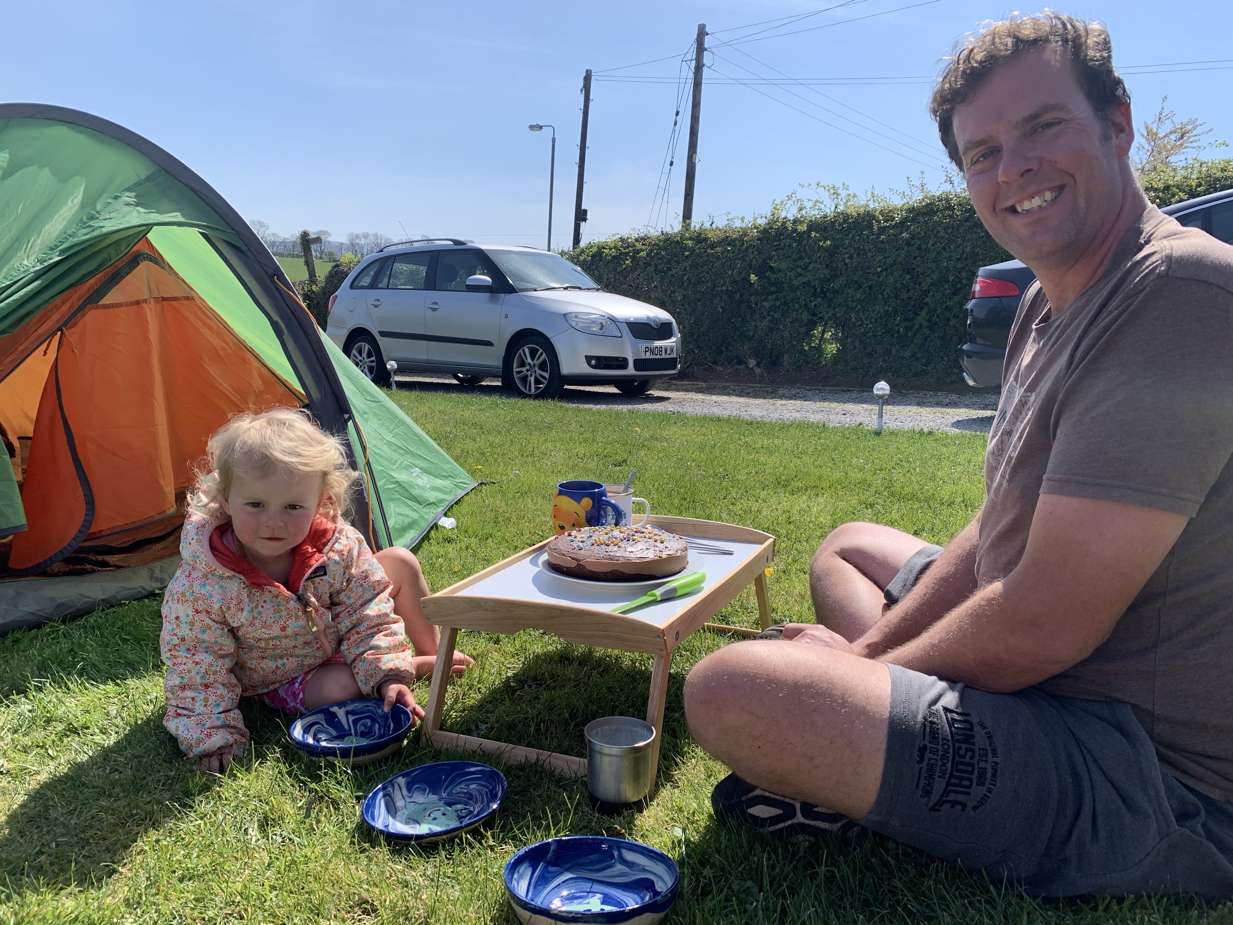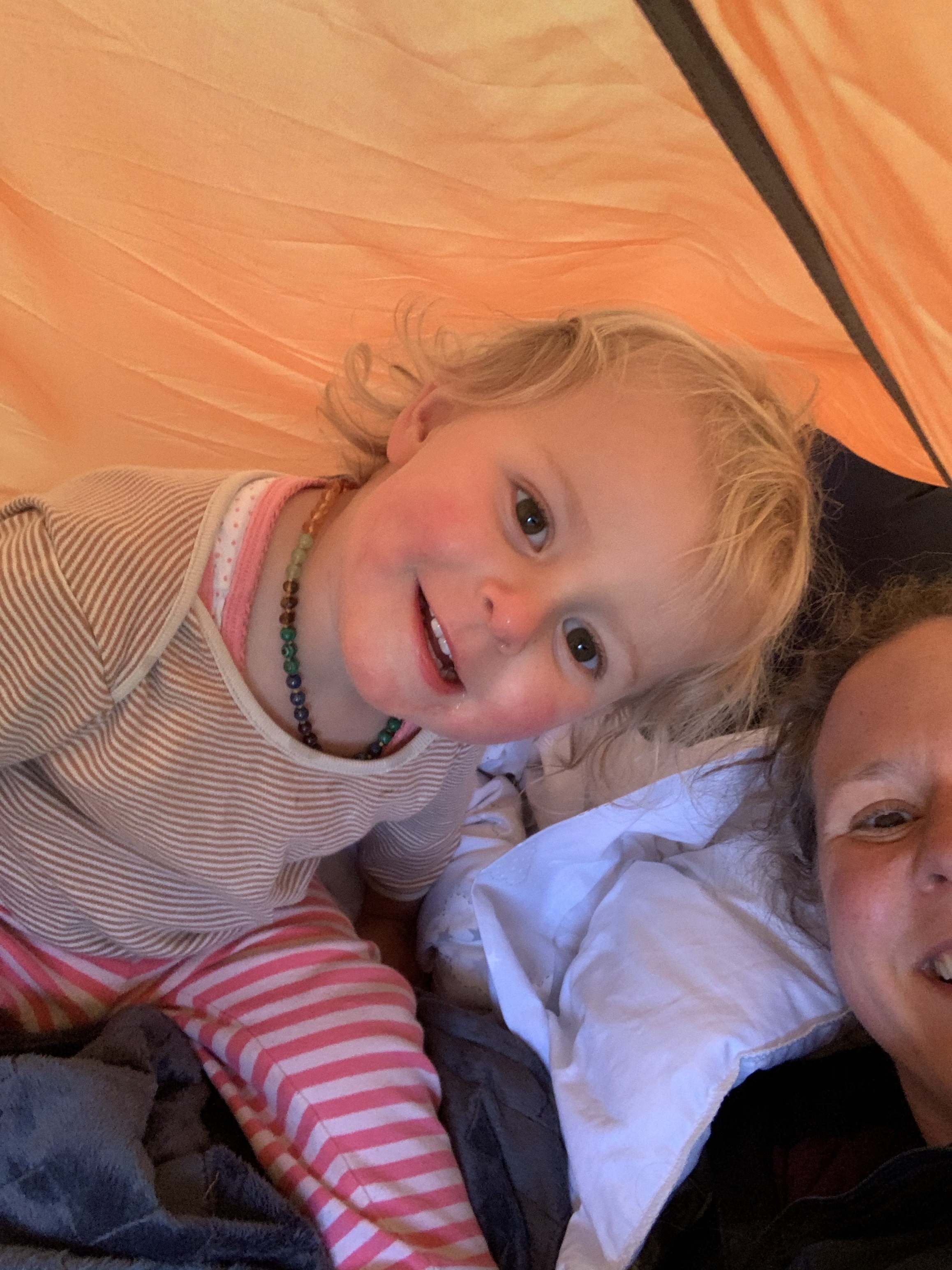 Camping in the garden Having just bought a new tent we decided to put it up. Mainly for something else to play with in the garden, ‘sleeping’, having tea parties, but also to have some nighttime adventures sleeping in the garden. It sometimes felt like being at a festival the next morning!!