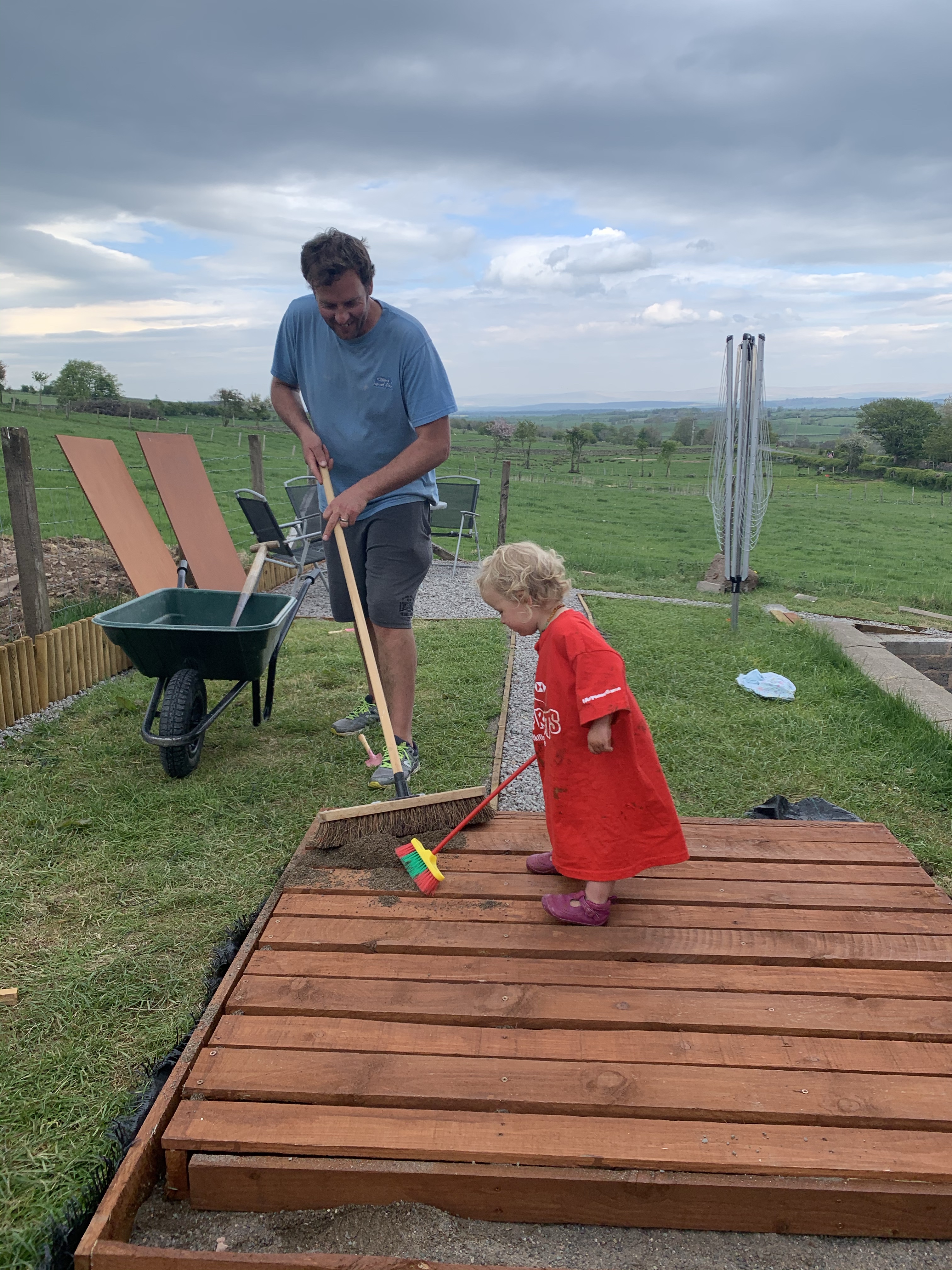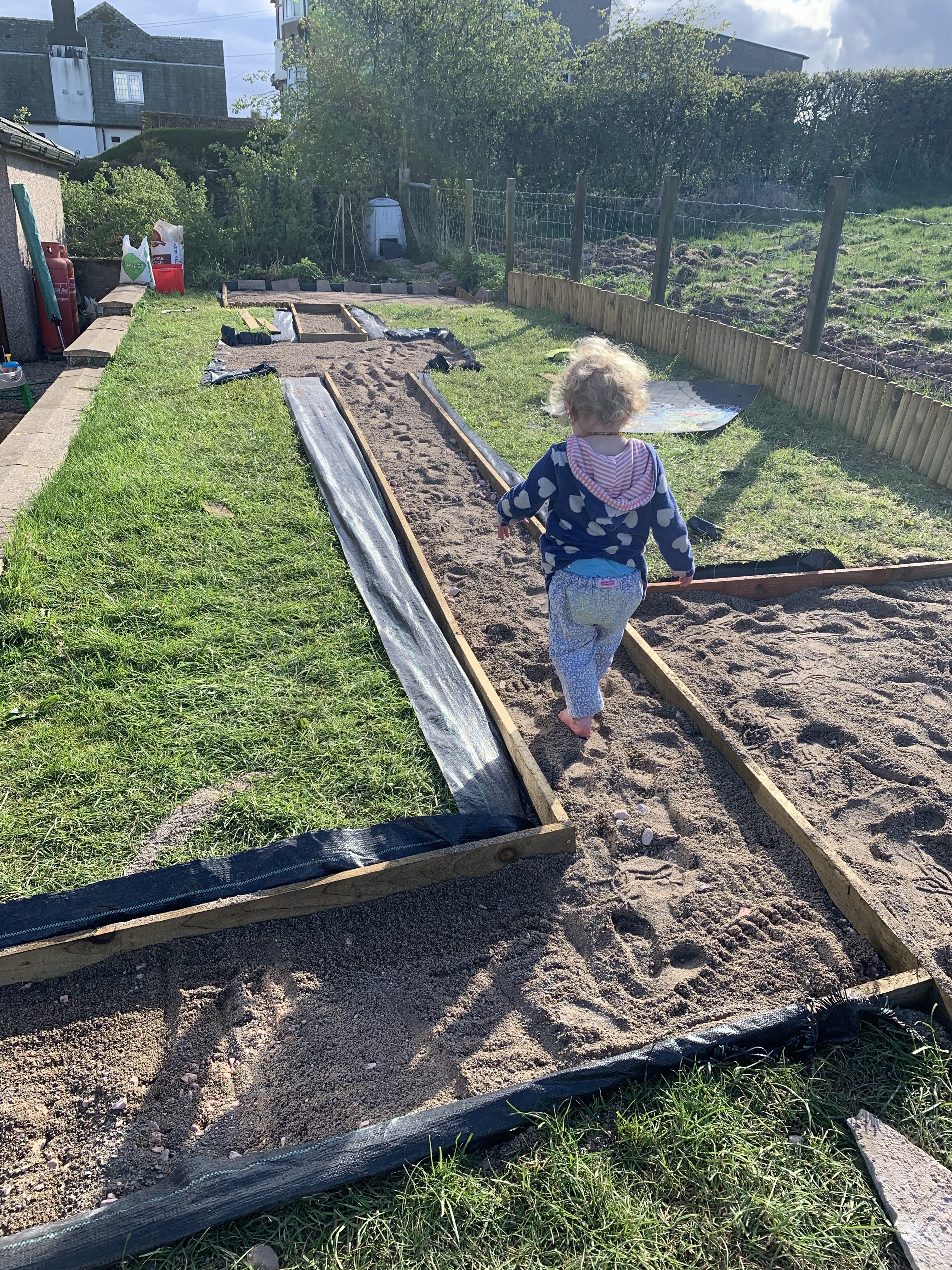 Digging, wheelbarrows and doing the back garden. Make way for Beans Lodge! We knew that Evie would love her own little playhouse and she had this as a present, but that meant turning the back garden from a winter quagmire into a useable space. Thankfully the local timber yard and suppliers of gravel stayed open through lockdown, so we got some supplies and got digging, wheelbarrowing, sawing, banging and finally painting! Evie got a house and a fence made from pallets, daddy made a golf tee out of pallets and mummy made a table and benches from pallets. Although it took many weeks to complete, it has been well worth the effort.
