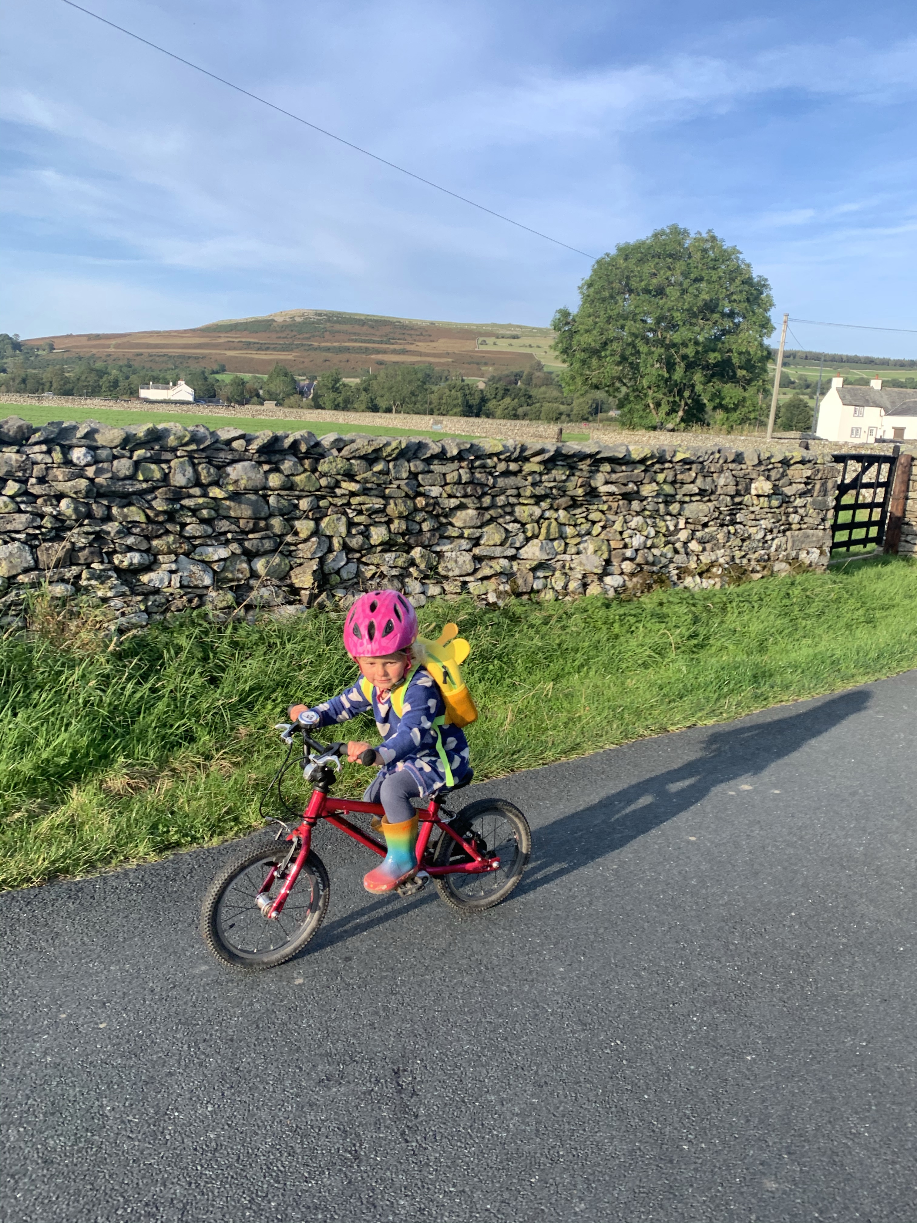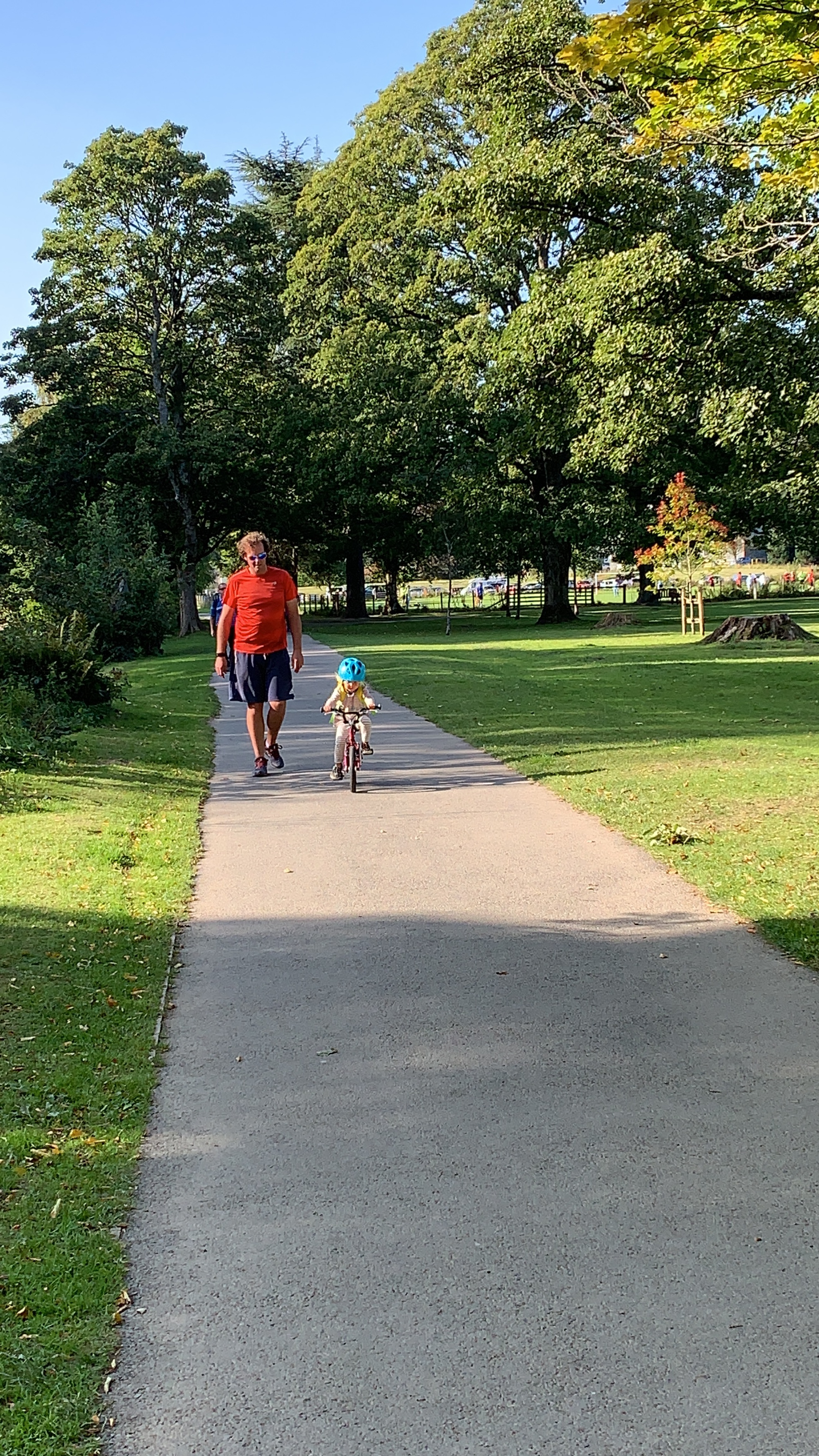 And then suddenly the next morning before mummy had to go to work she announced she wanted to go biking…. and on a glorious September morning bike she did just this about the small roads of Bampton with Omi nearby as well. What a fabulous morning that was – big smiles for all involved.