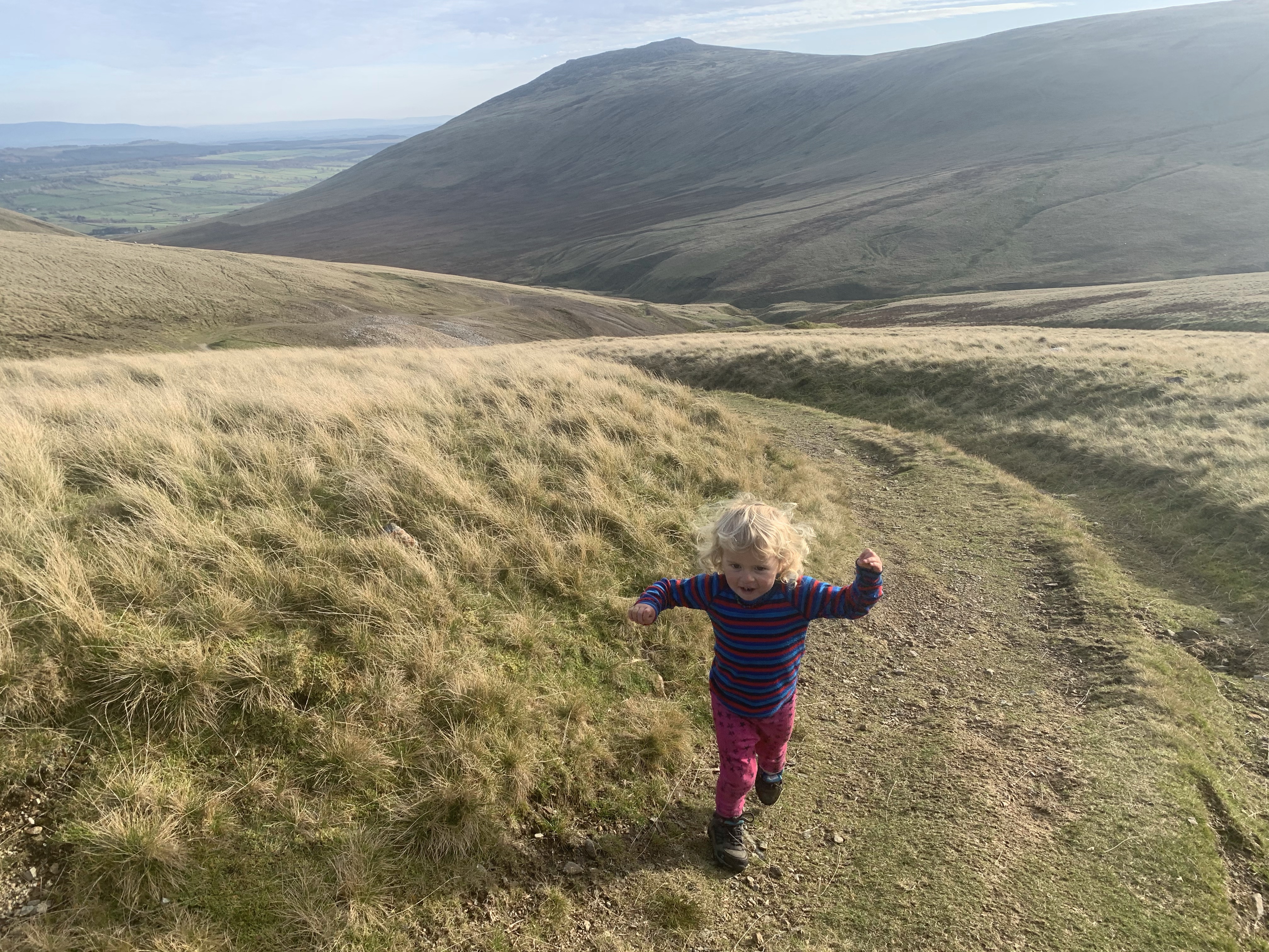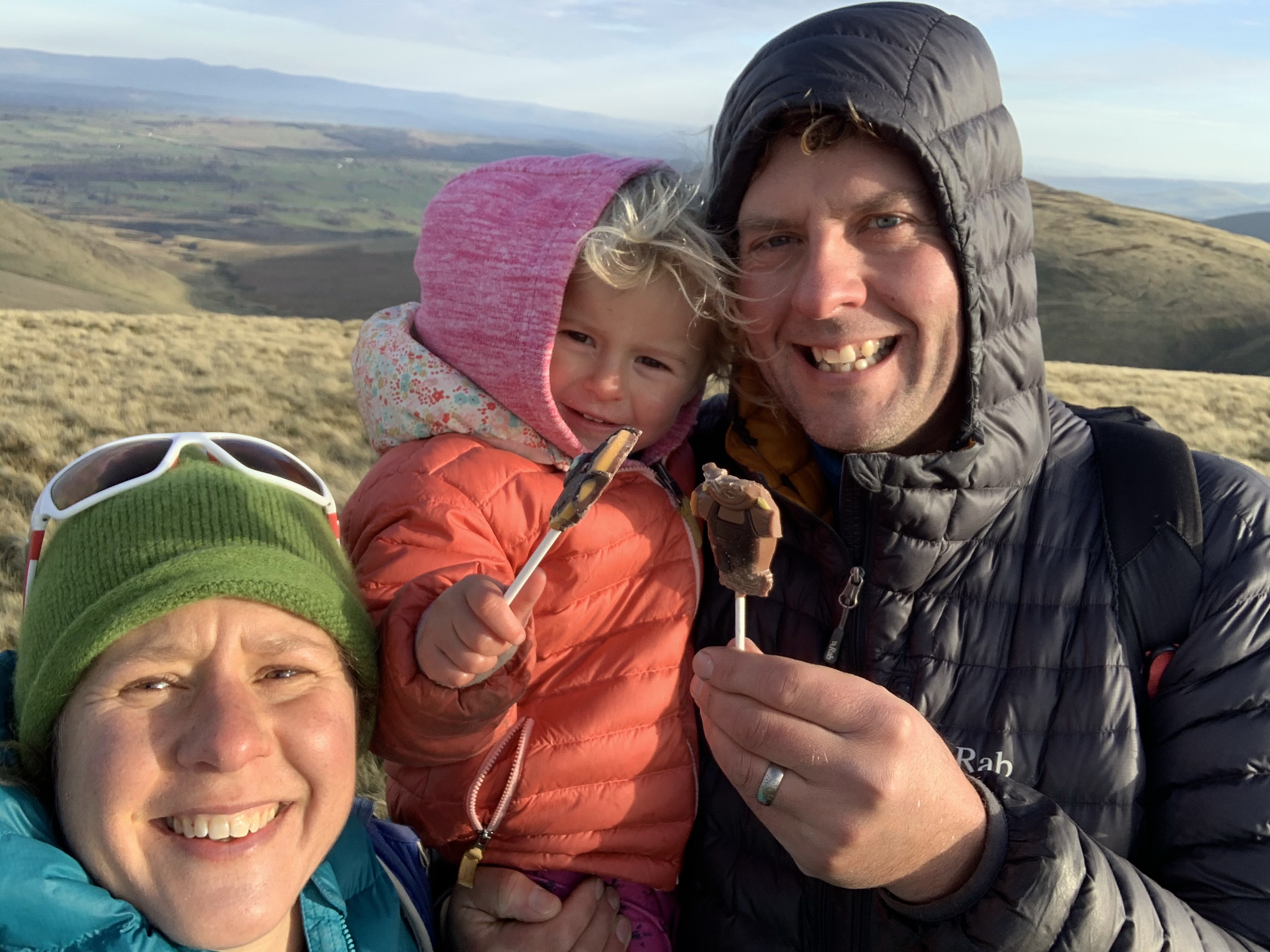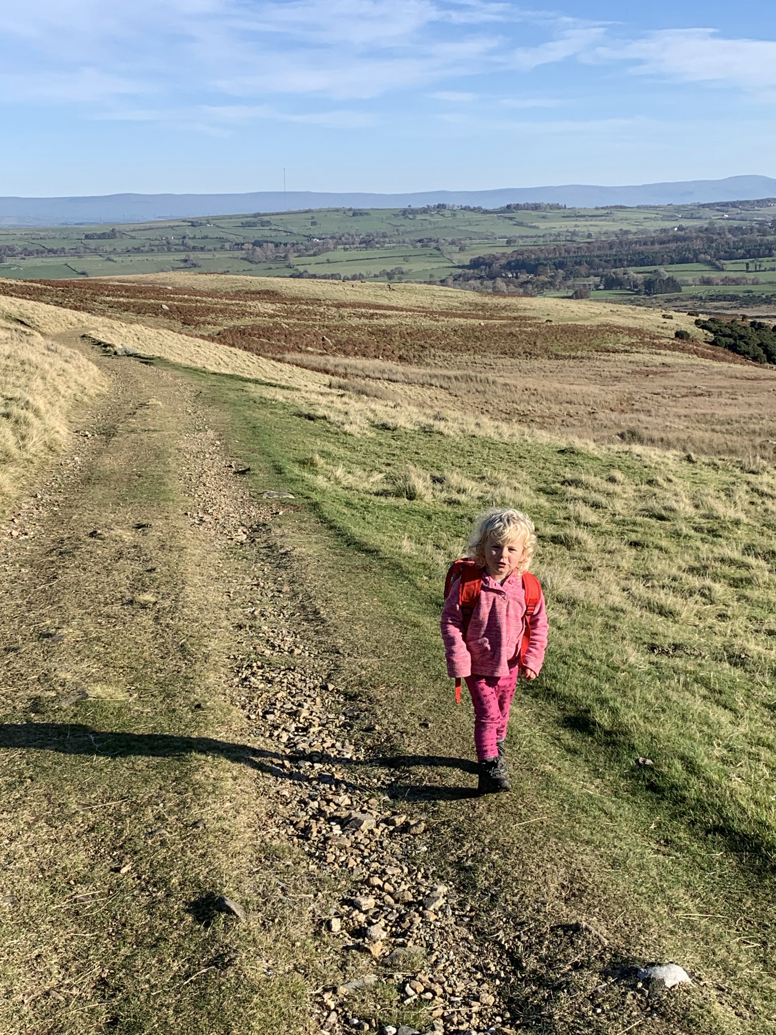 A cold but sunny day, we stay local and head for a family walk up High Pike for some views.