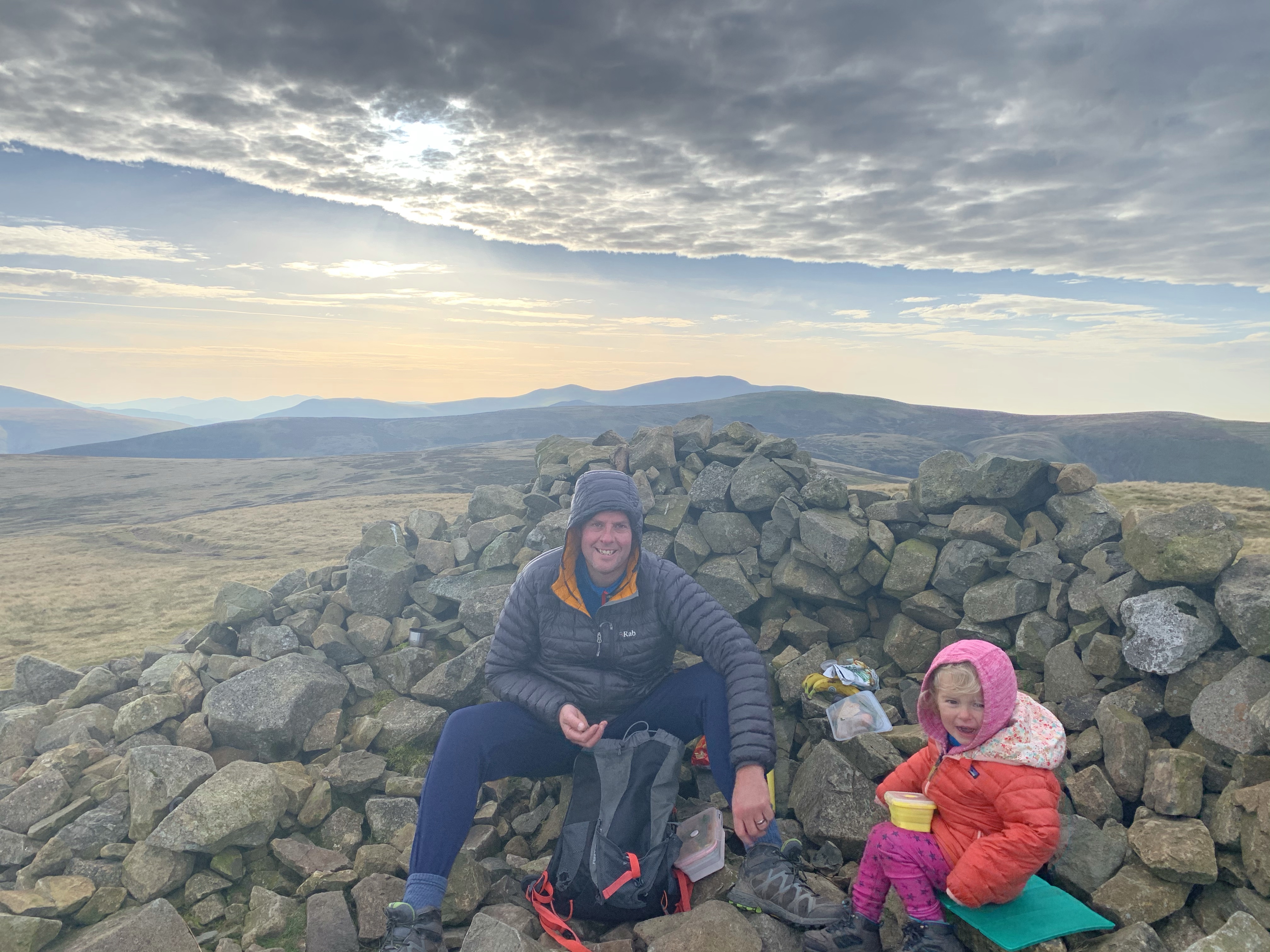 There were some spectacular clouds in the sky, but glad we had all the warm kit in the bag and a good packed lunch, including hard boiled eggs and bonfire biscuits to give us the energy to descend!