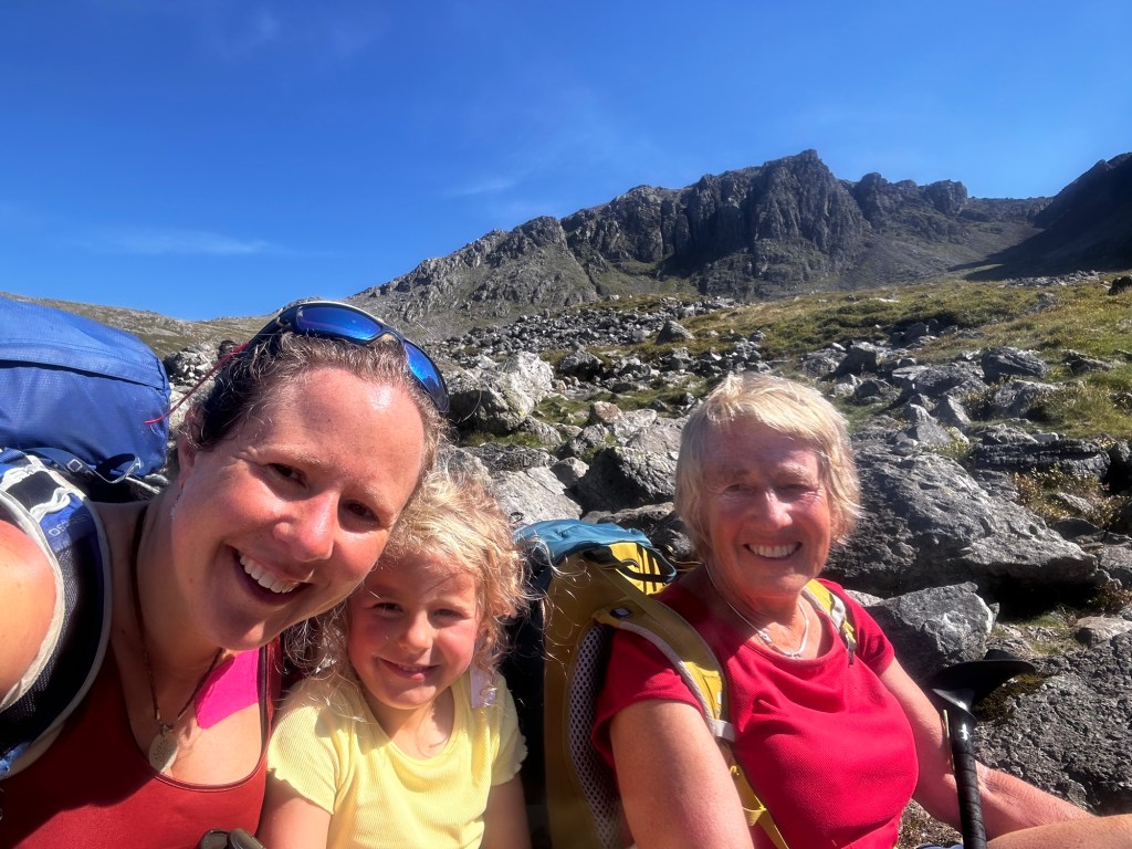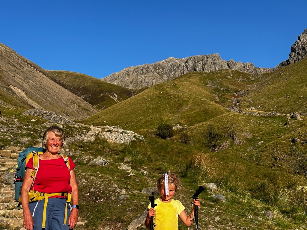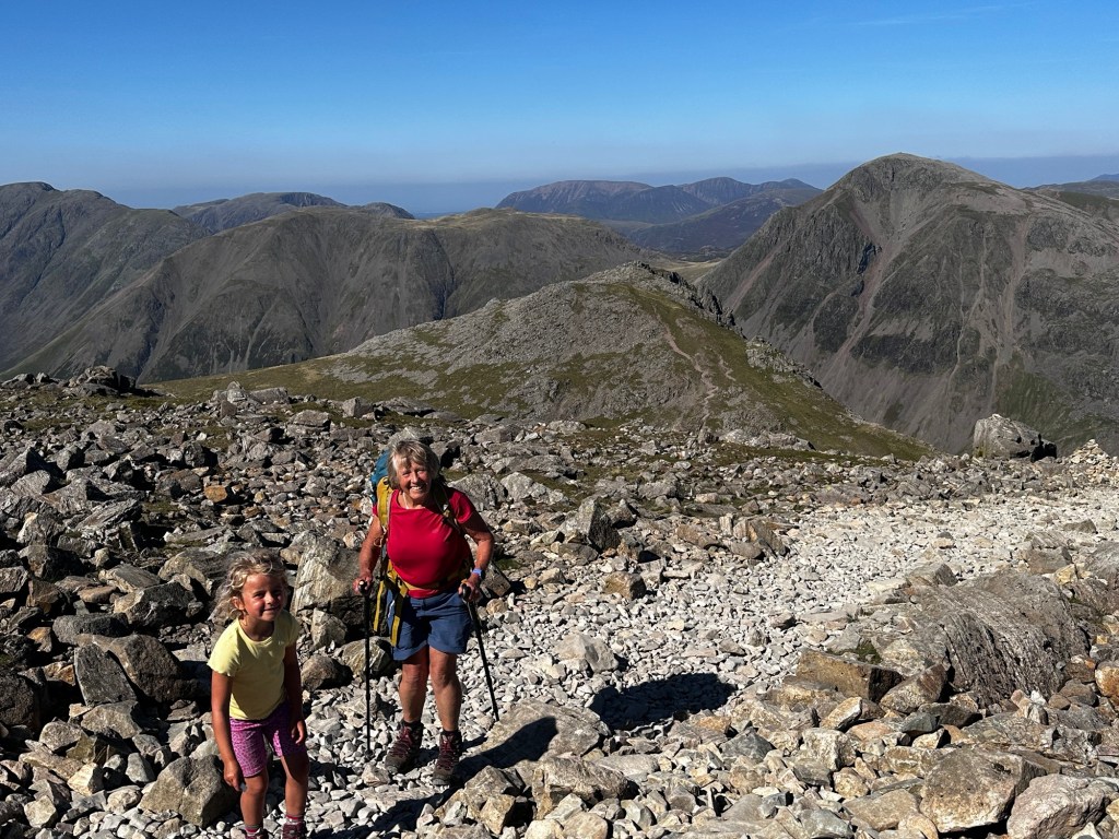 Walking with Grandma to, we started and finished our walk up Scafell Pike from the National Trust car park at Wasdale Head. Lots of sweets, treats and food snacks to make our way slowly to the top.