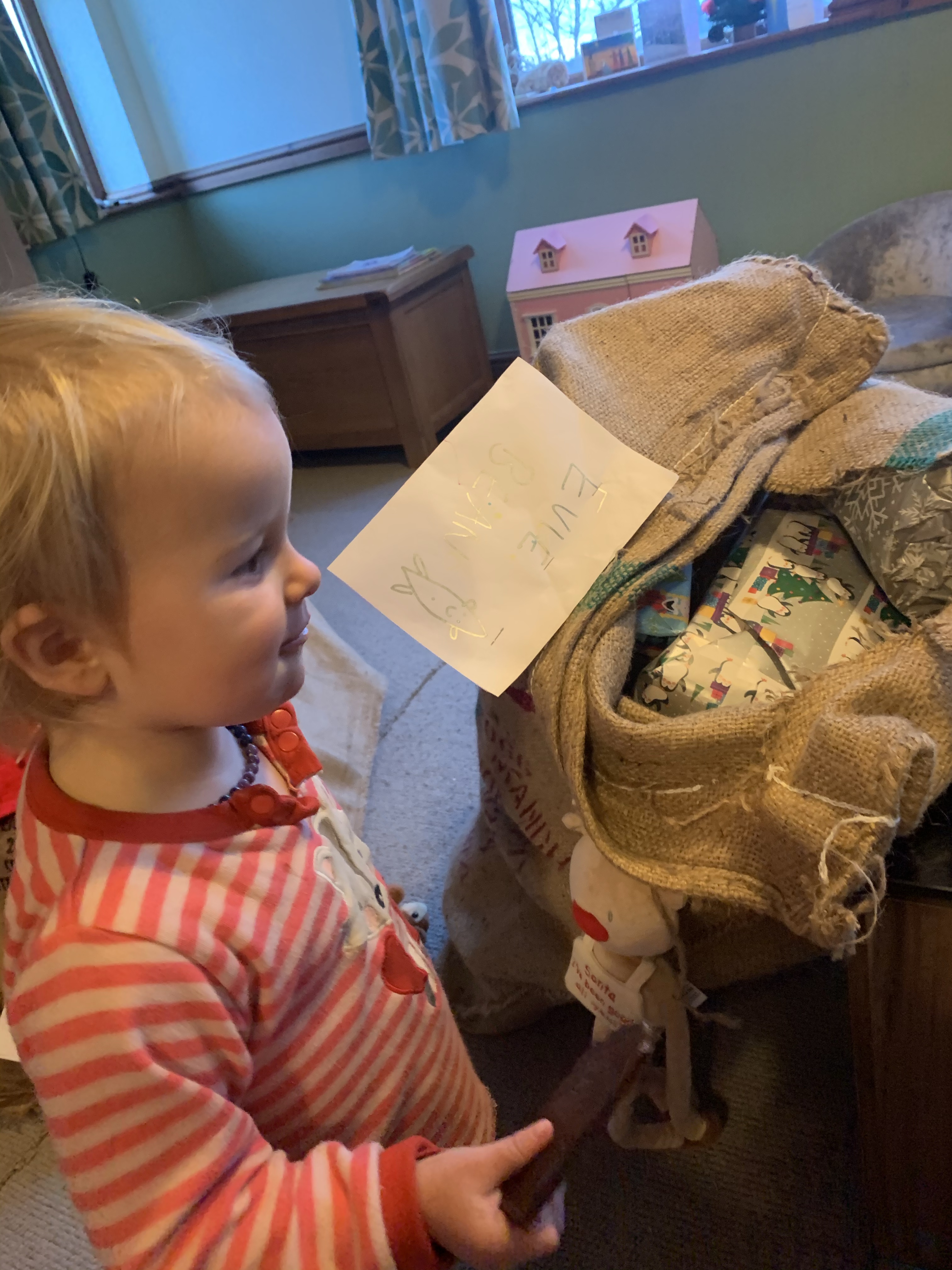 Evie puts out her carrot for Rudolph and mince pie for Santa and goes to bed hopeful!!