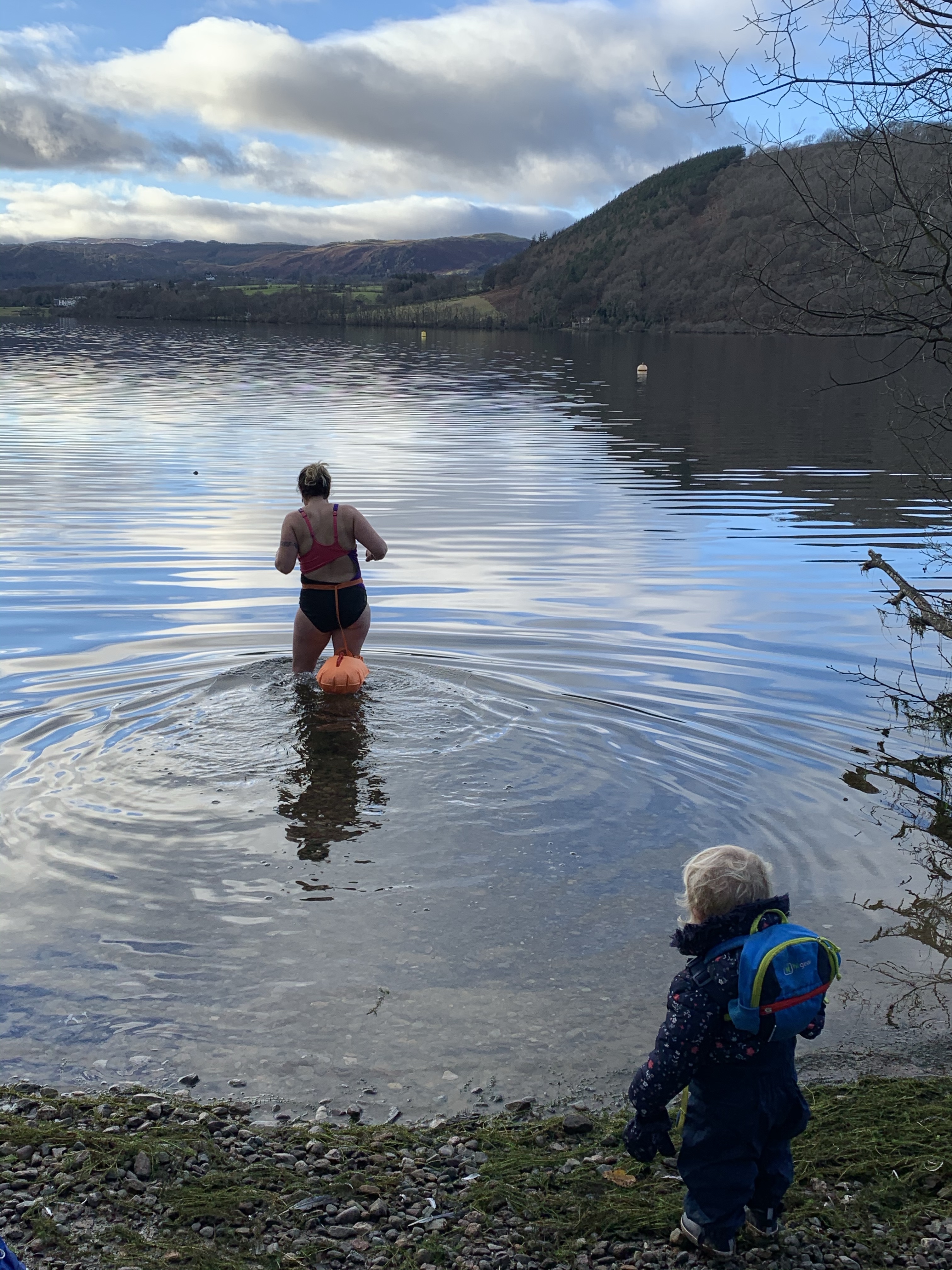 Evie watches mummy go for her Christmas Day swim. And then thinks about going in herself.