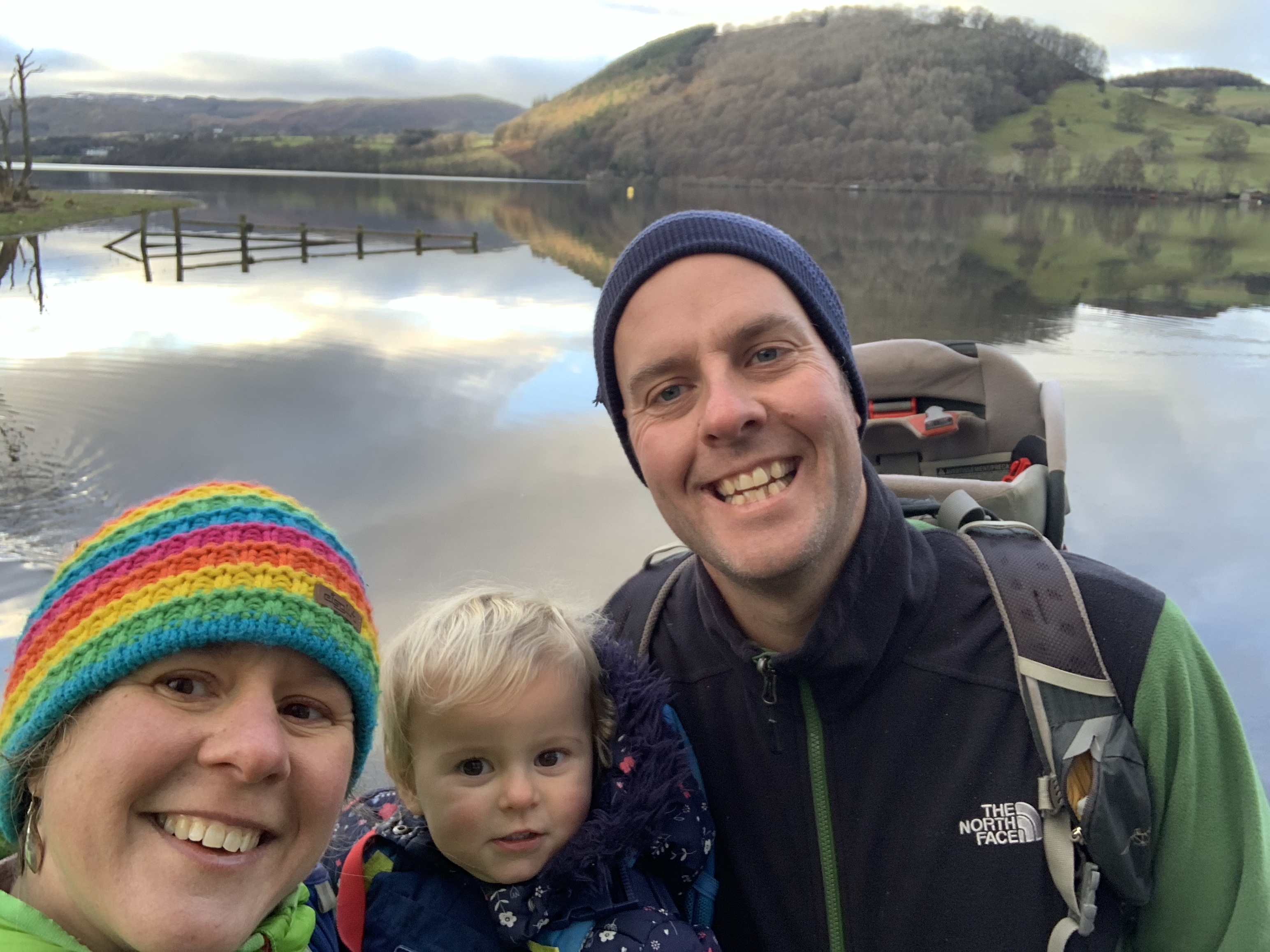 Time to descend, I think Evie realised how cold it was as she put up no resistance to going back in the pack. And then we played horsey horsey most of the way back down the hillside to keep her amused.