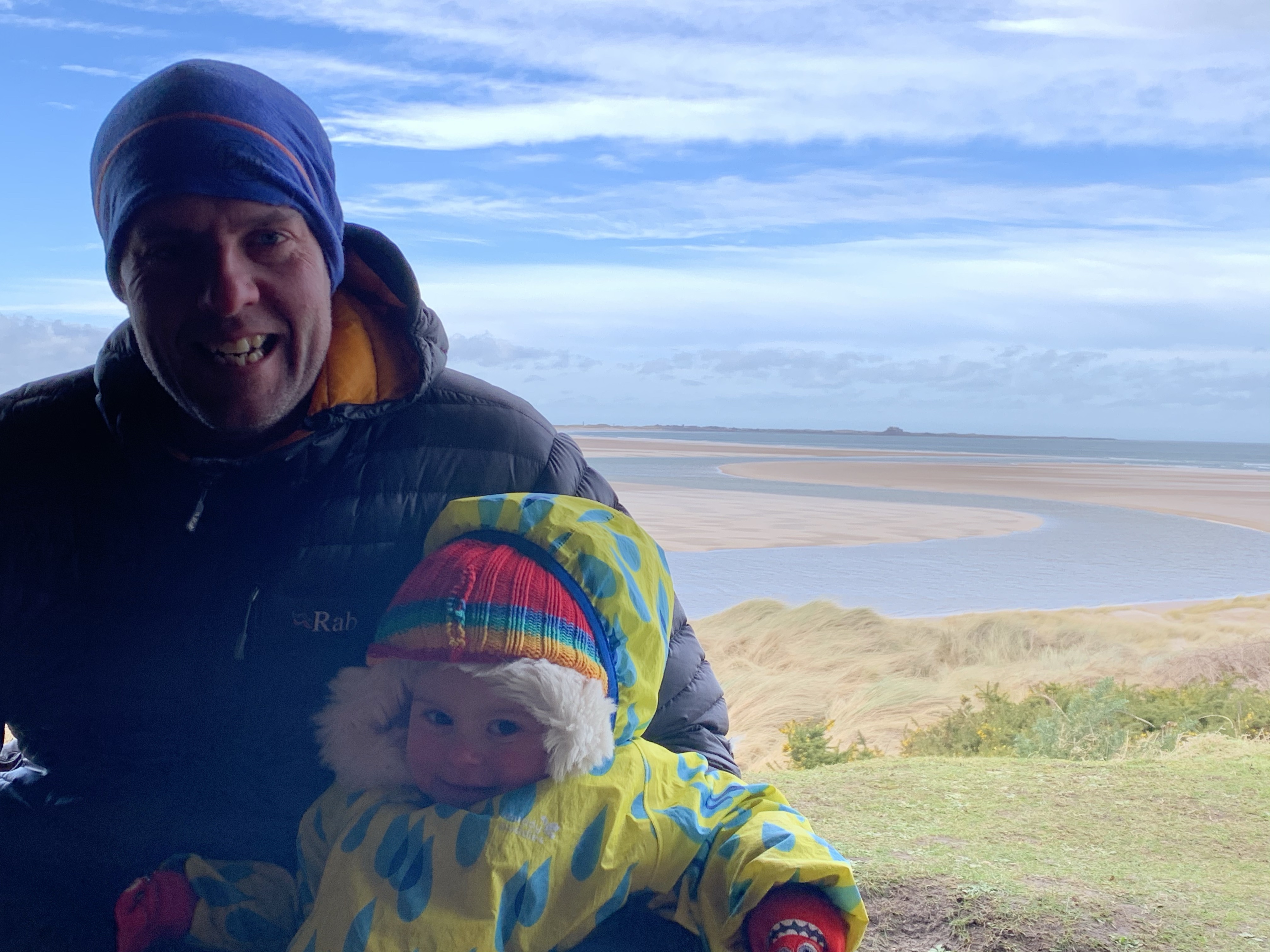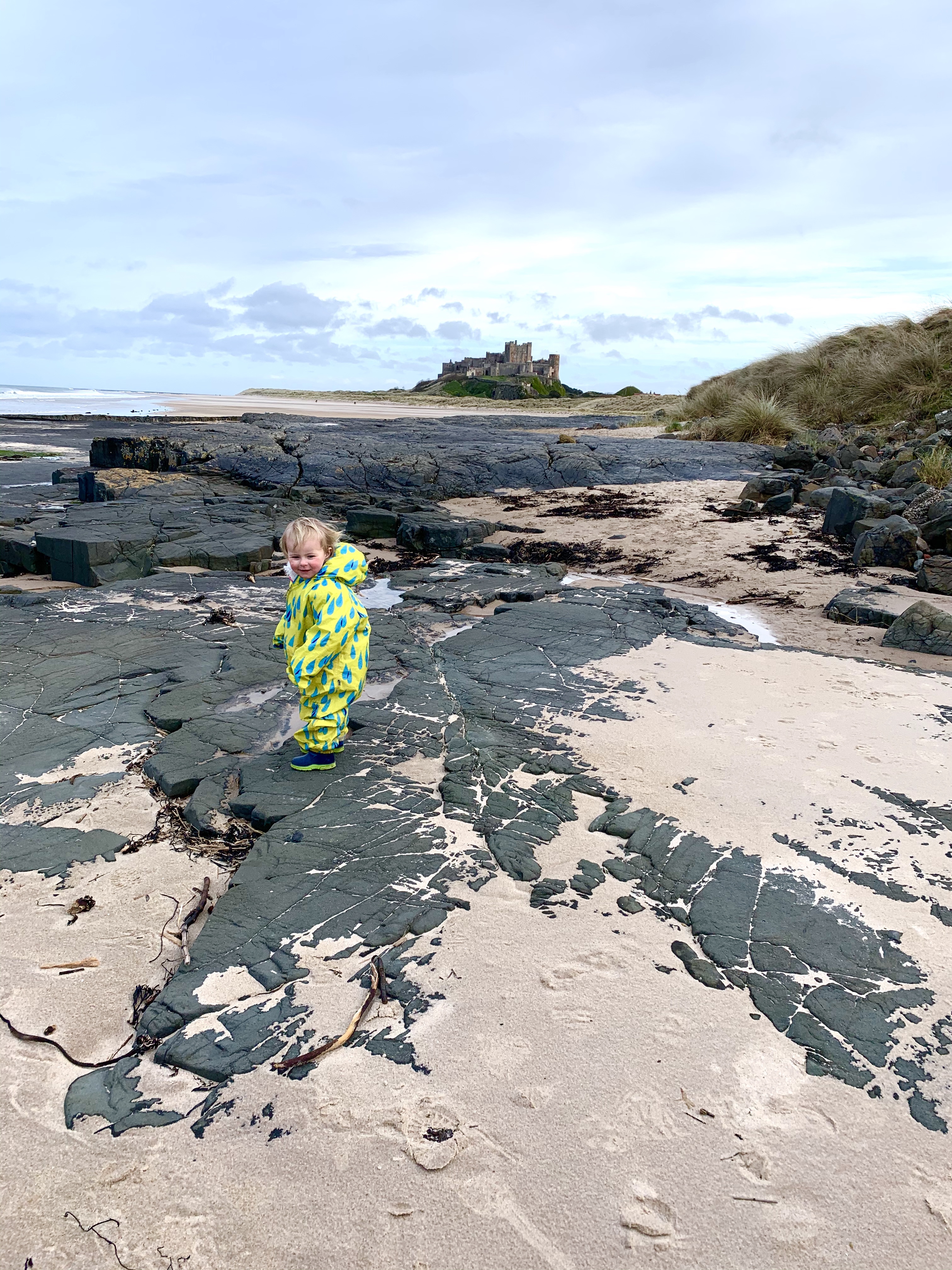 Daddy heads back to get the car as Evie was happier in the shelter of the coastline.We ended up pottering down onto the beach to enjoy the views of Bamburgh again.