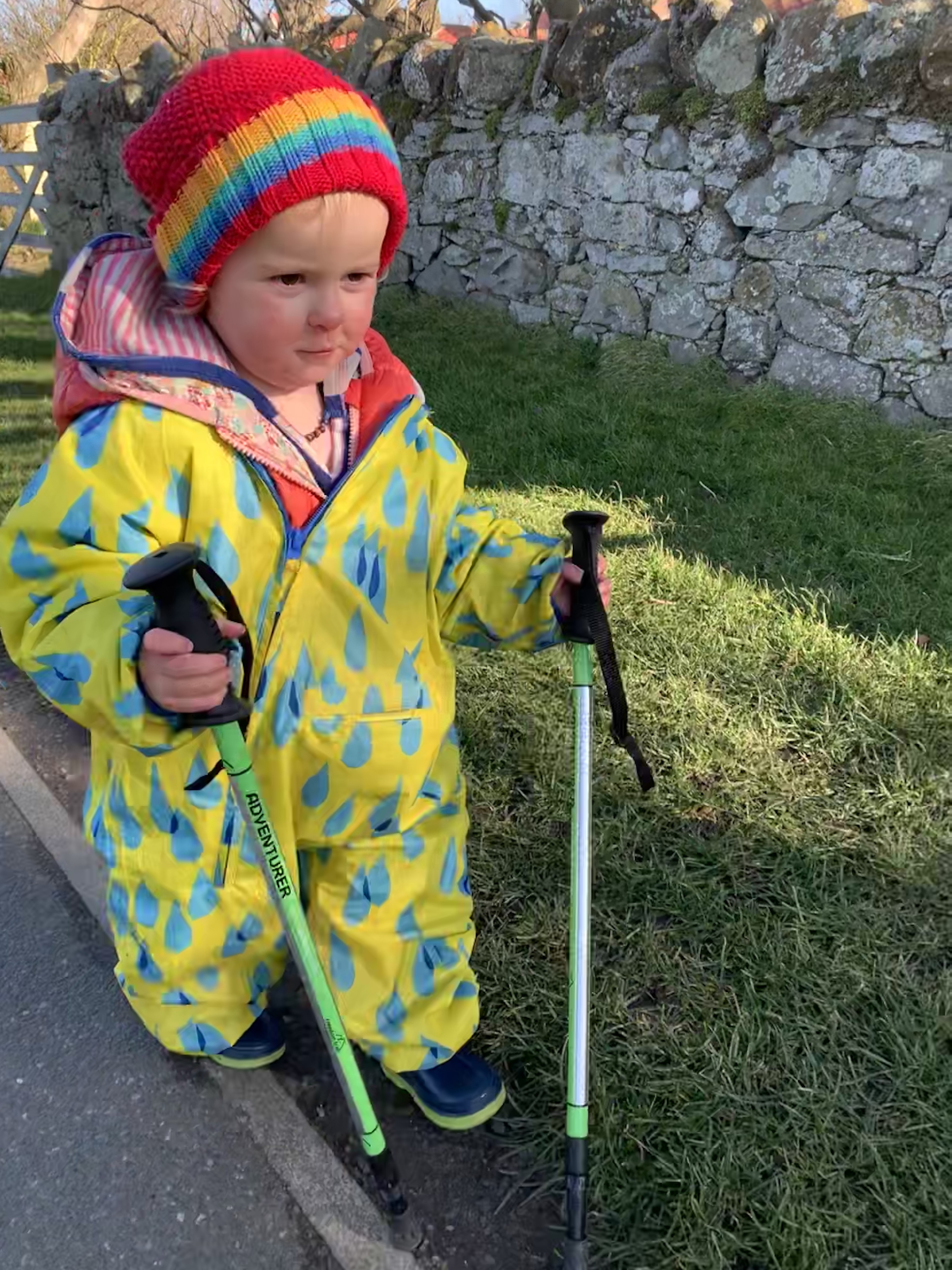 Finally when we were down to warmer climes Evie gets out of the pack and gets a good walk down, jumping the rocks and other borders and running around.