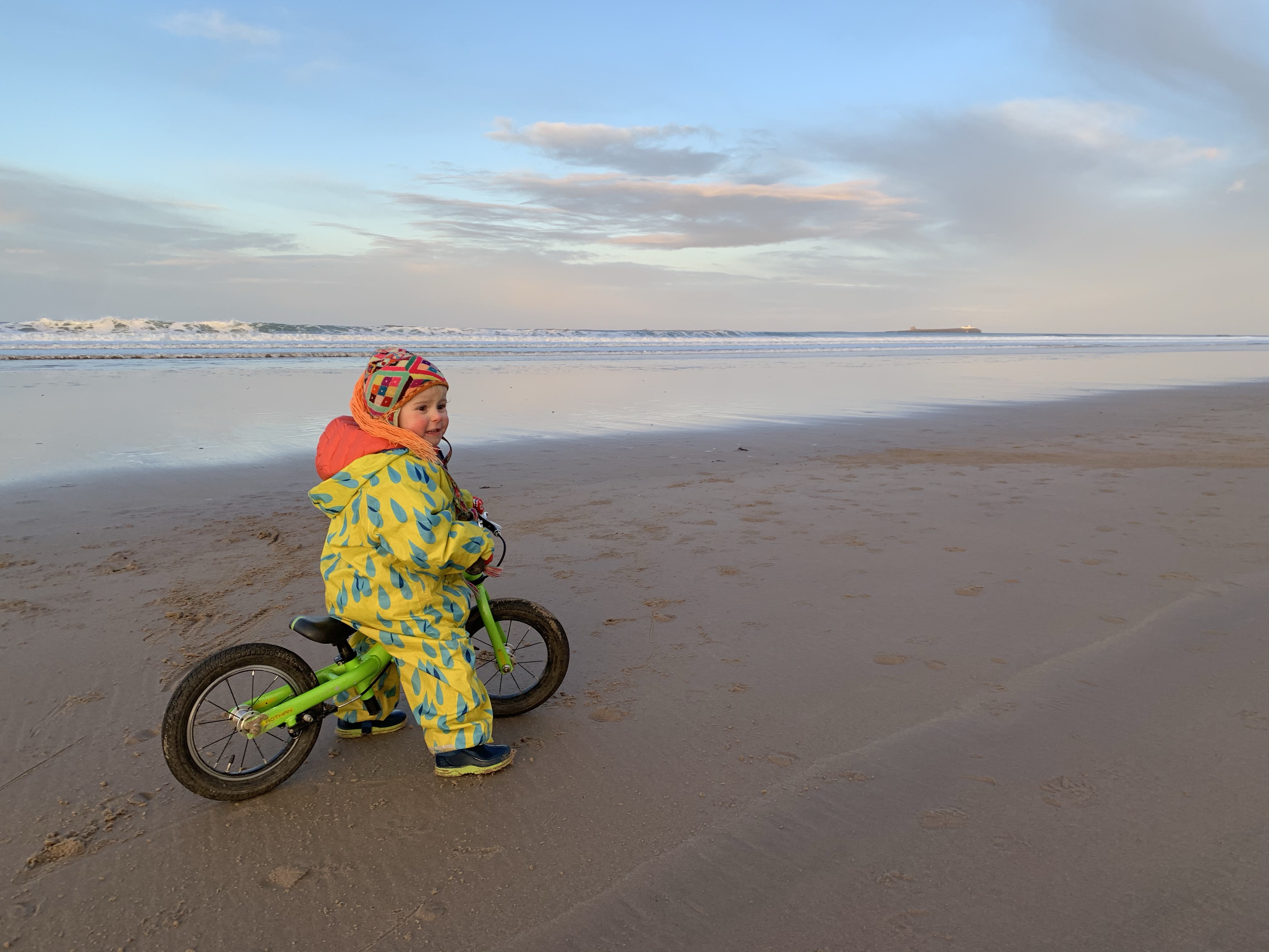 After Evie has a much needed kip, we head back down to the beach, via the park, of course. The ice-cream shop was sadly shut, but we have a ball and a bike to keep us amused.