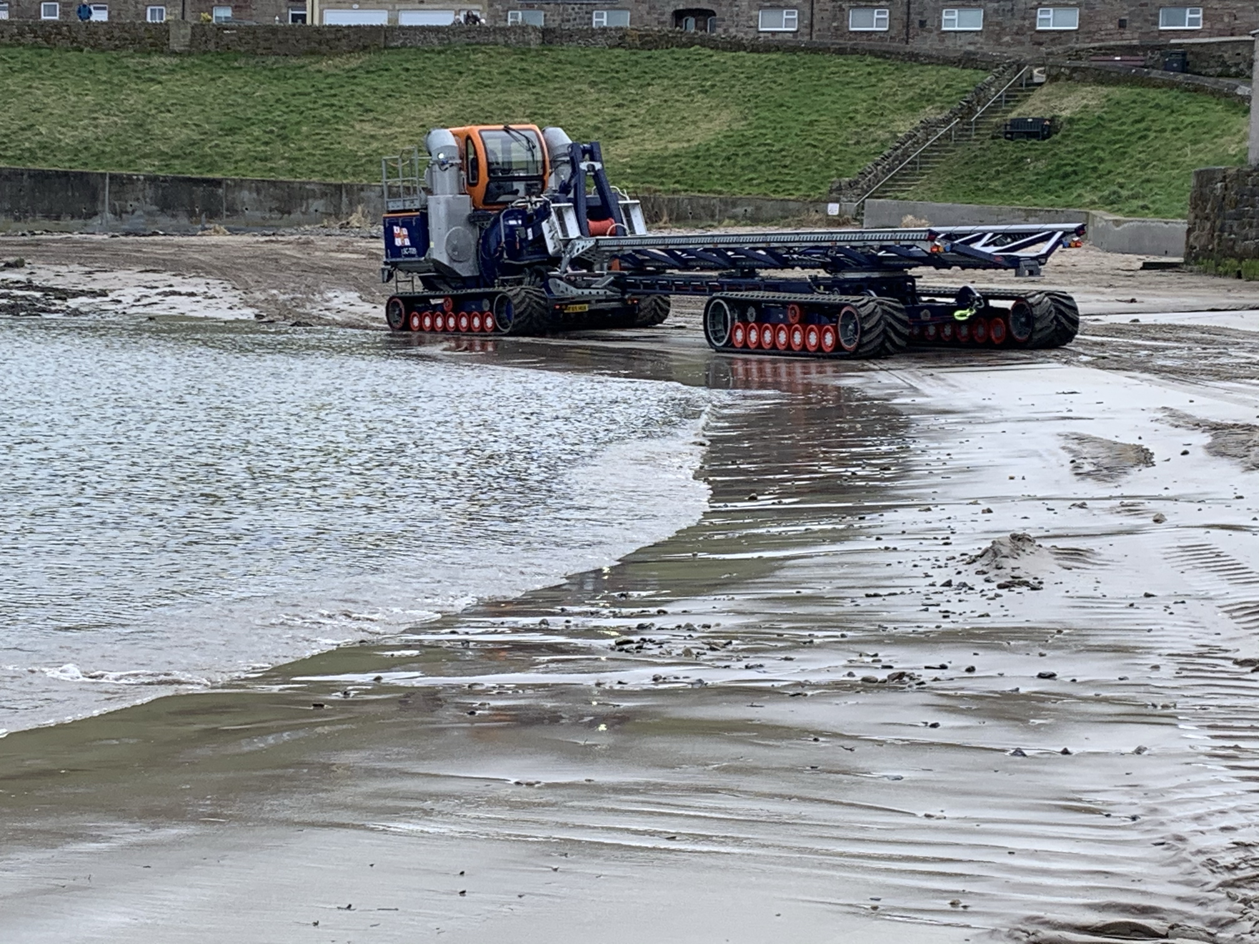 After whizzing there, we go and visit the RNLI station, see the boats, and then get to watch the crew play with their brand new (one day old) toy, that they have got to go with their soon to be arriving new boat. For Evie it was very exciting to see this tractor, although she did worry that it may come and run over her toes!