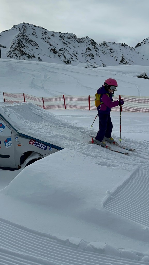 The difference between last year at Mayrhofen and this year at Solden was that only ‘full’ days were offered for ski school – 10am – 3pm in Solden. Both we and Bean felt that this was too long for a 5 year old. We all missed skiing together as a family in the afternoons. And by the time she was done the slopes were all cut up and we were all ready to finish for the day.
