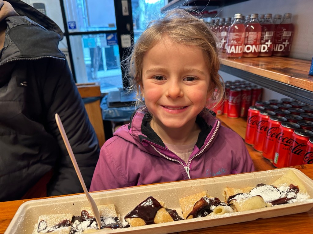 After all that walking we had a late pancake lunch, which was delicious. Then time to board the ferry – early – due to an anticipated rough journey.