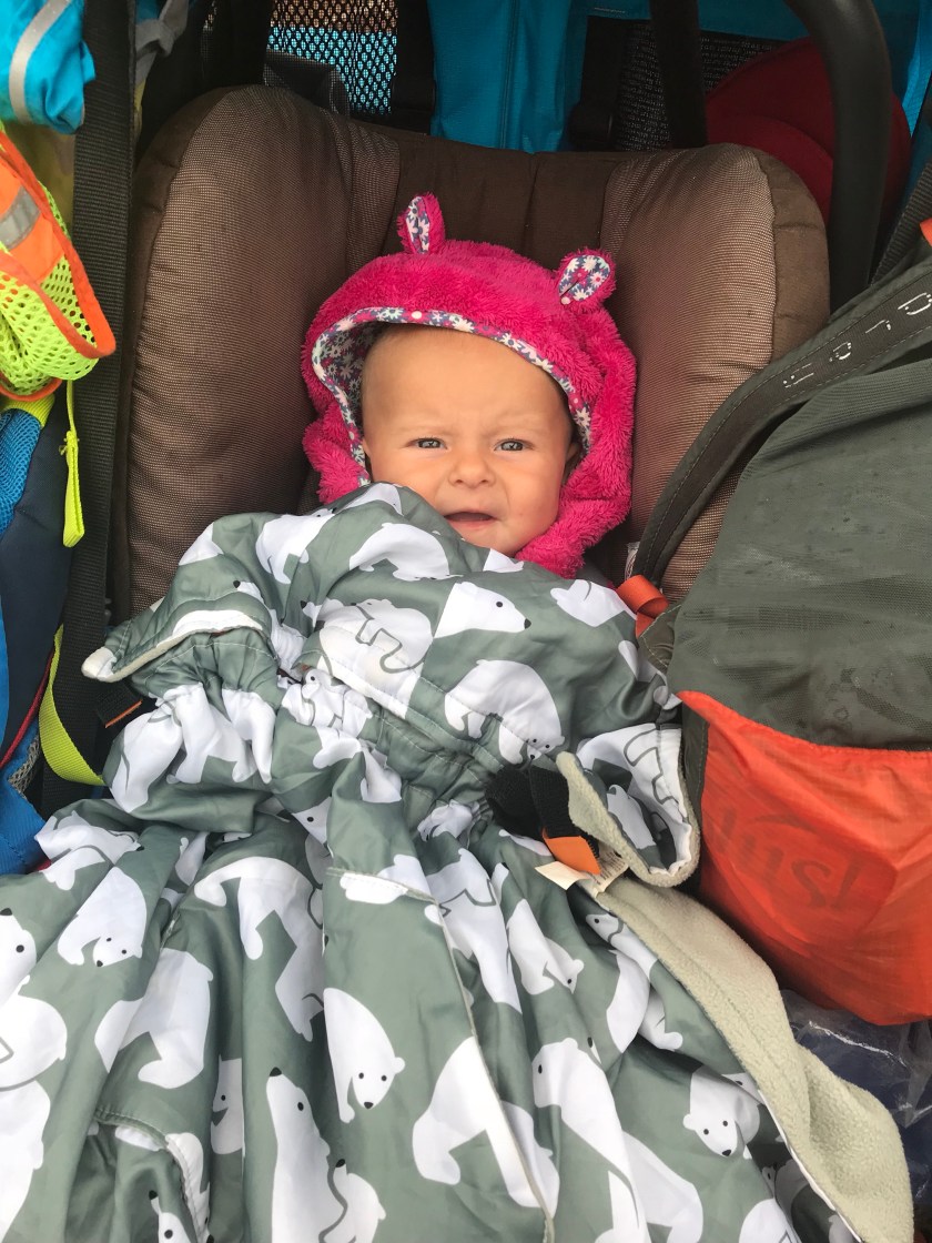We recently trialled it on the back as Evie is growing. I’m pleased to say it seemed just as effective keeping her dry in an alpine thunderstorm.
