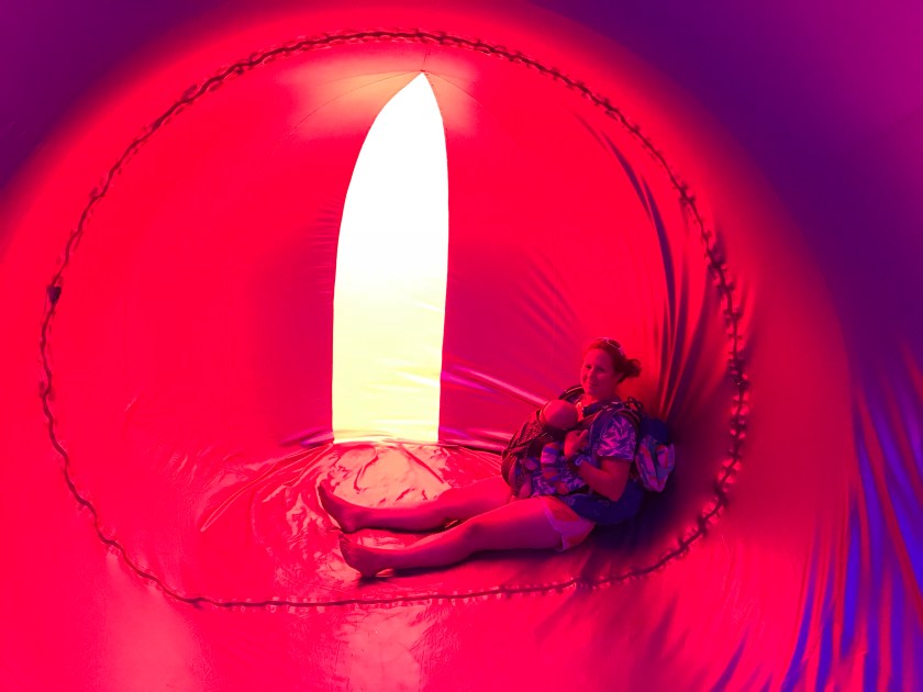 The next day we had a relaxed start, met the family yoga teacher, so went to her session together both mornings. Then we hit the festival and did some cool stuff. Like go in this geometric art structure!