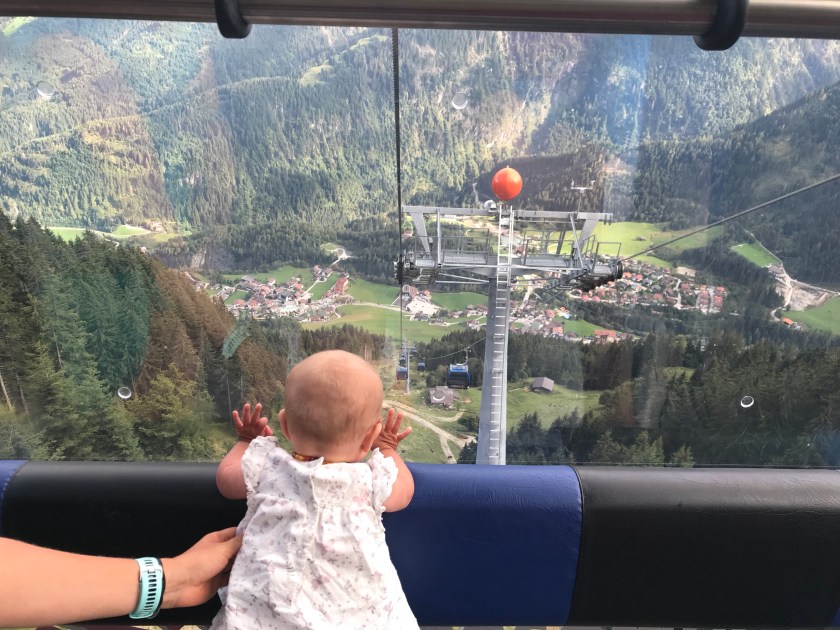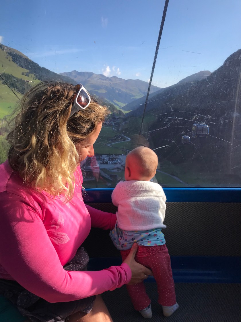 First lesson of this day was don’t waste time trying to drive to the top of a lift to save on some cable car money (my idea). The result was a VERY narrow hairpin mountain road with very few barriers and very steep drops (why is it that holding on to the door inside the car in these situations somehow helps the nerves?!). Halfway up this nerve racking road we then got to a barrier that you clearly only get a pass for if you live this high up the mountain. So back down we went, and after some deliberation about options, we boarded the Finkenbergen Almbahnen cable car to its middle station.