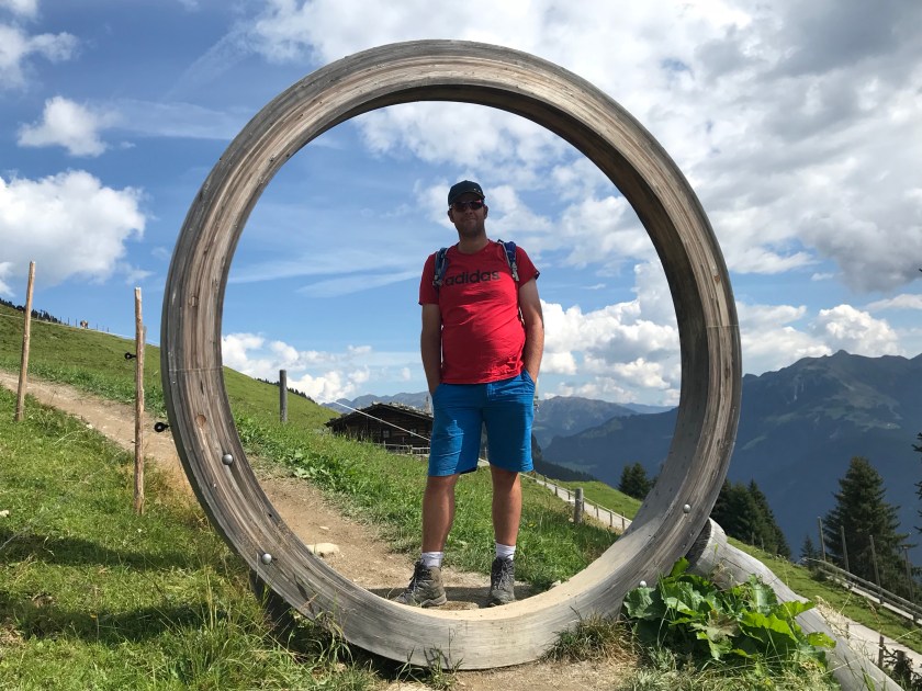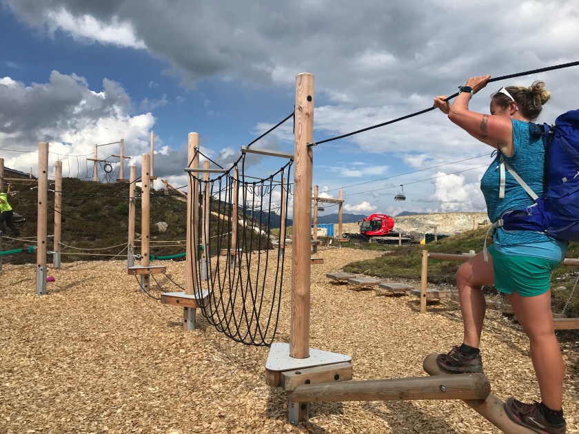 A steep up for a while but then we arrived at the top of the lift on the Penken. What better way to arrive on a hill top than through an amazing adventure playground (as exciting for the big kids as the younger ones!)