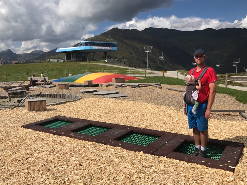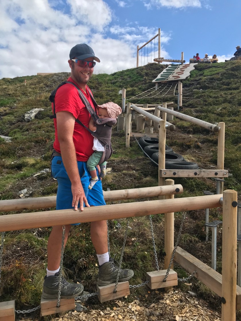 Once this amazing course was scaled, we went and enjoyed a drink at the brand new beautiful mountain restaurant, the Granatalm, before having to also have a play on the little kids playground (Evie gave us a pass!). Meet Pepi Bear!