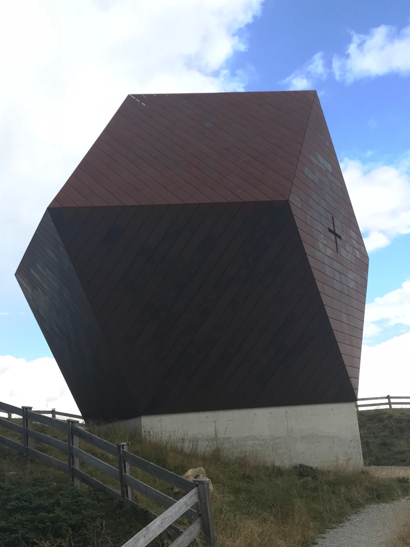 Before heading down we stopped off at the new chapel, the Granatkapelle at 2,087m. Intriguing from the outside, beautifully simple inside, it is a sight to behold.