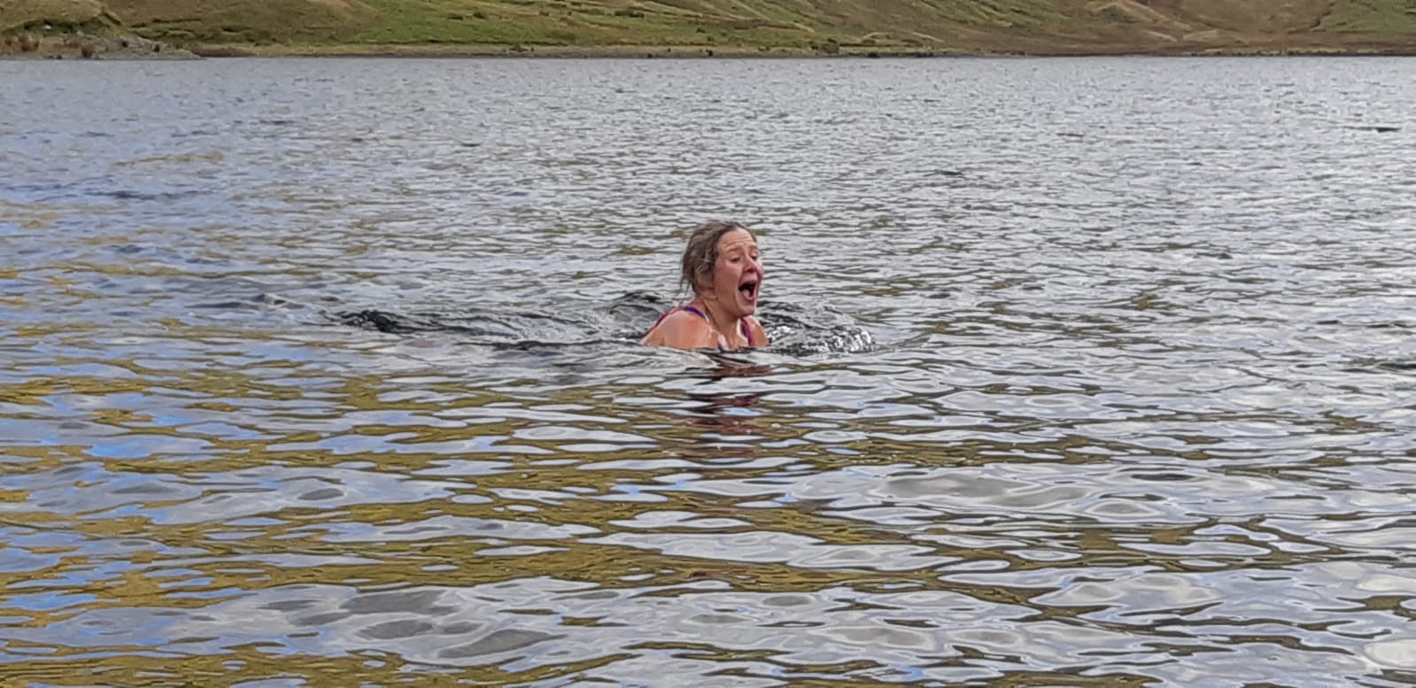 A cold swim for mummy with the swans whilst Evie, Oliver and Claire enjoy freezing ice cream for doing so well today.