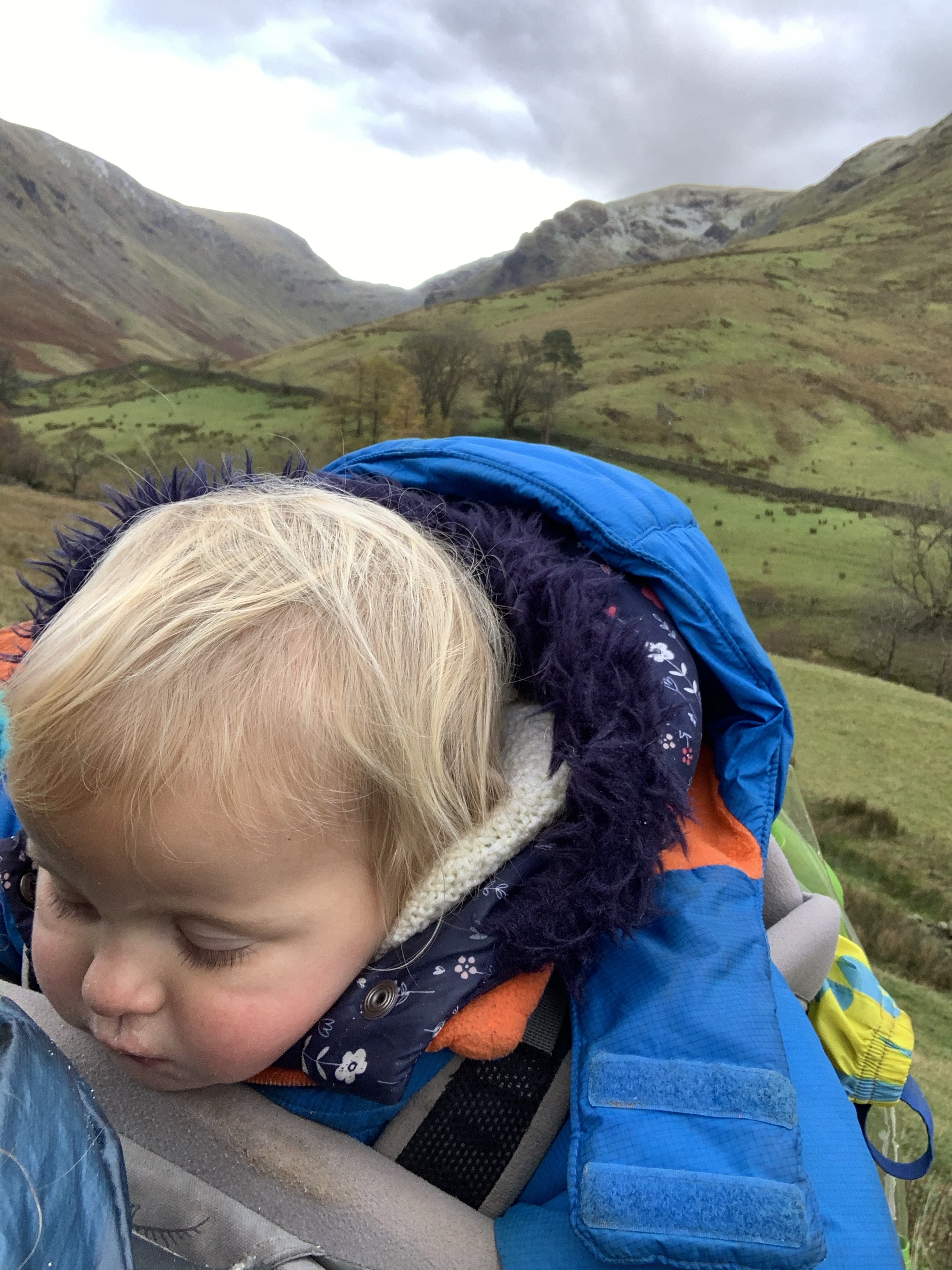 literally JUST before we get to the car, Evie Bean falls fast asleep – what an energetic day it’s been.