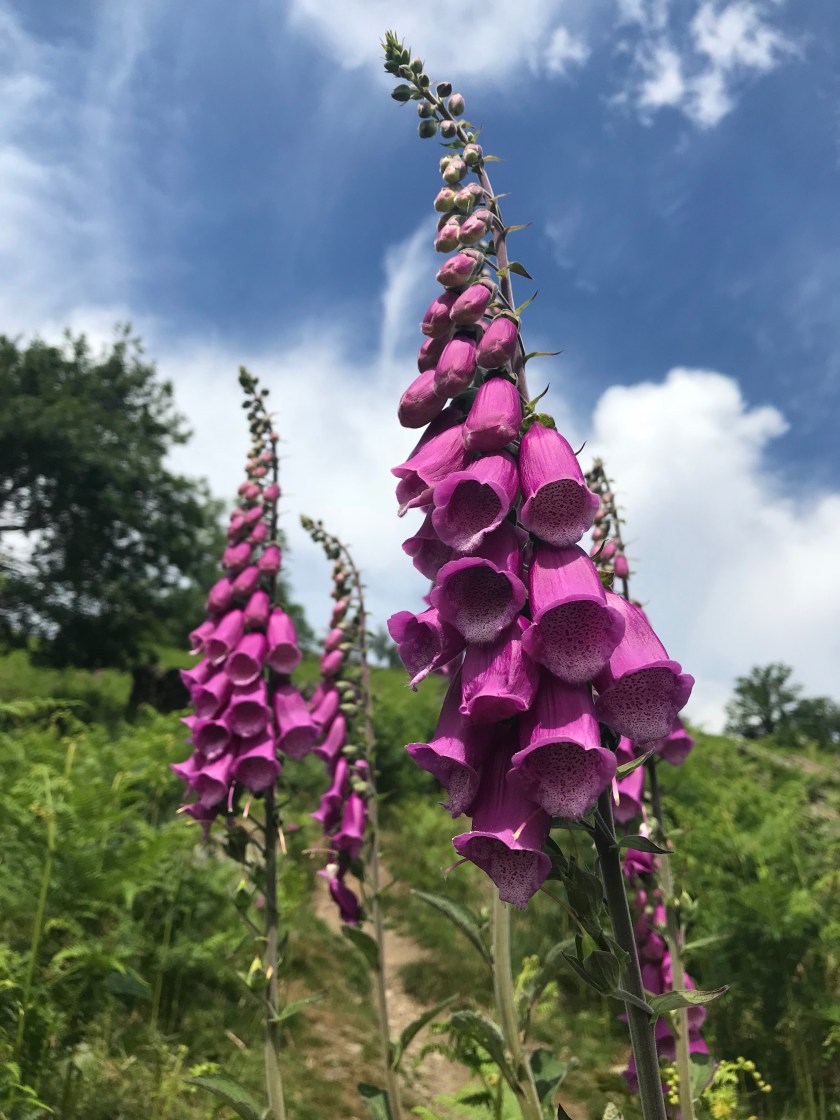 Setting off up the ridge is a very steep and stepped walk, which went on and on. However, another gorgeous day meant I could just stop and enjoy the foxgloves and the thousands of iridescent blue dragonflies flying around.