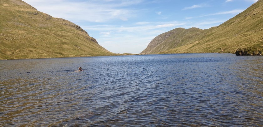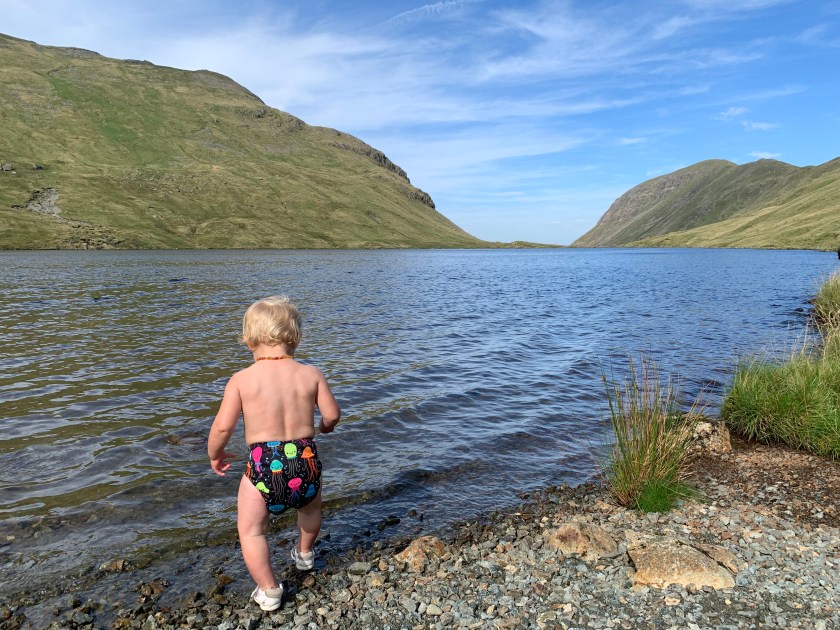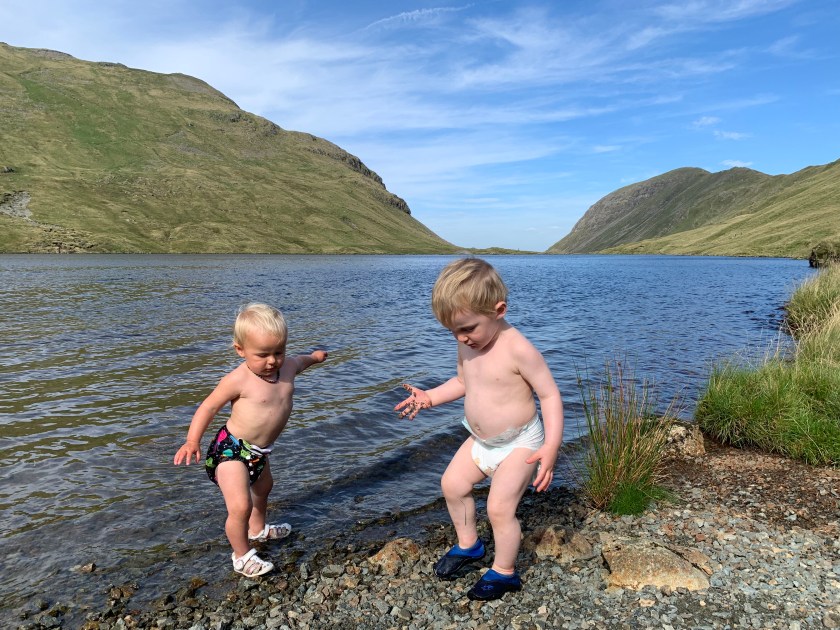 After a dicey descent from the top of the Rigg, we finally get to Blean Tarn for a swim…. so refreshing. Even Evan and Evie enjoy padding in the deliciously cold waters today.